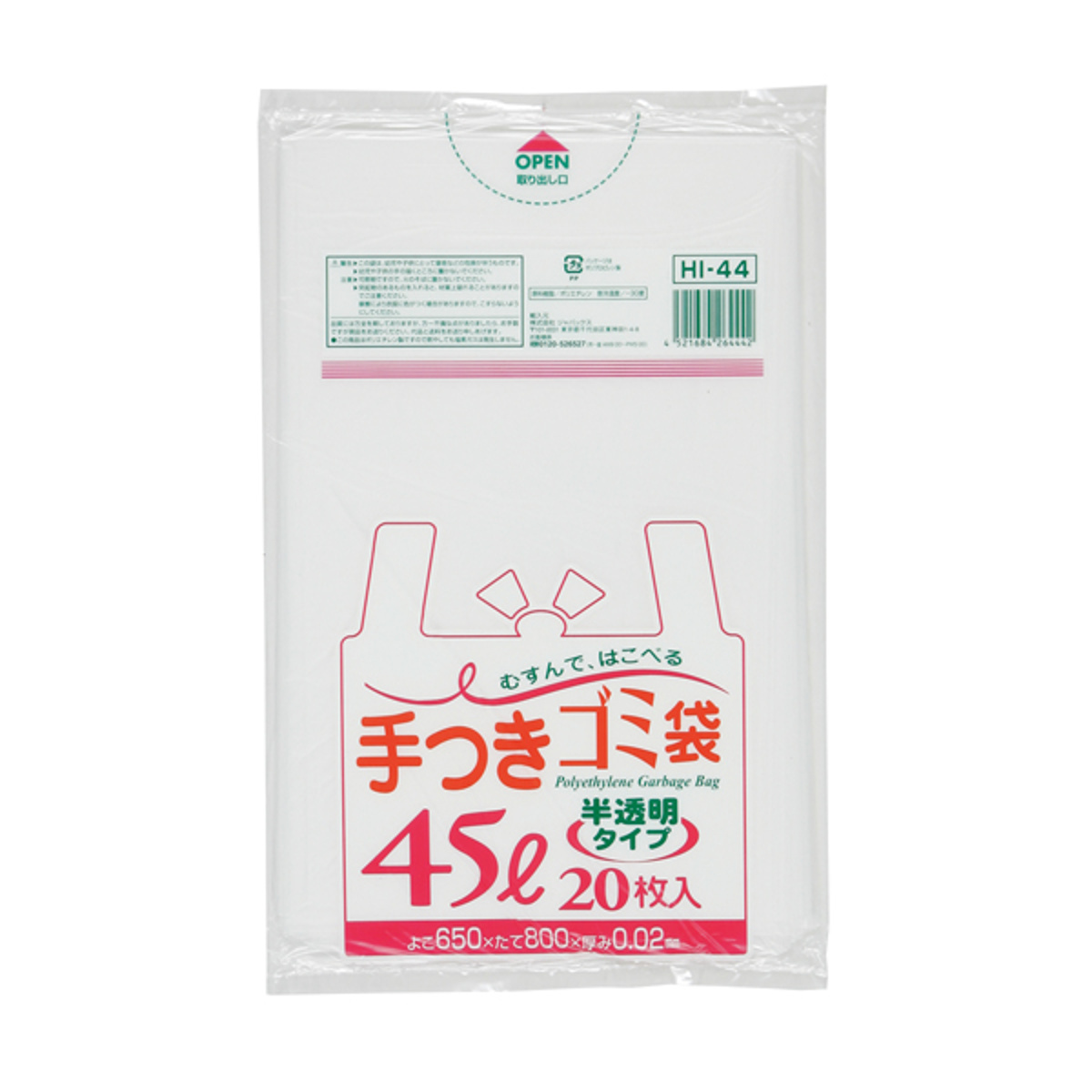 ゴミ袋 45L 30個セット 600枚入り 手付き 半透明 ( ビニール袋 縦80×横65cm 中身が見えにくい 取っ手付き カサカサ レジ袋 ポリ袋 消耗品 日用品 キッチン用品 )