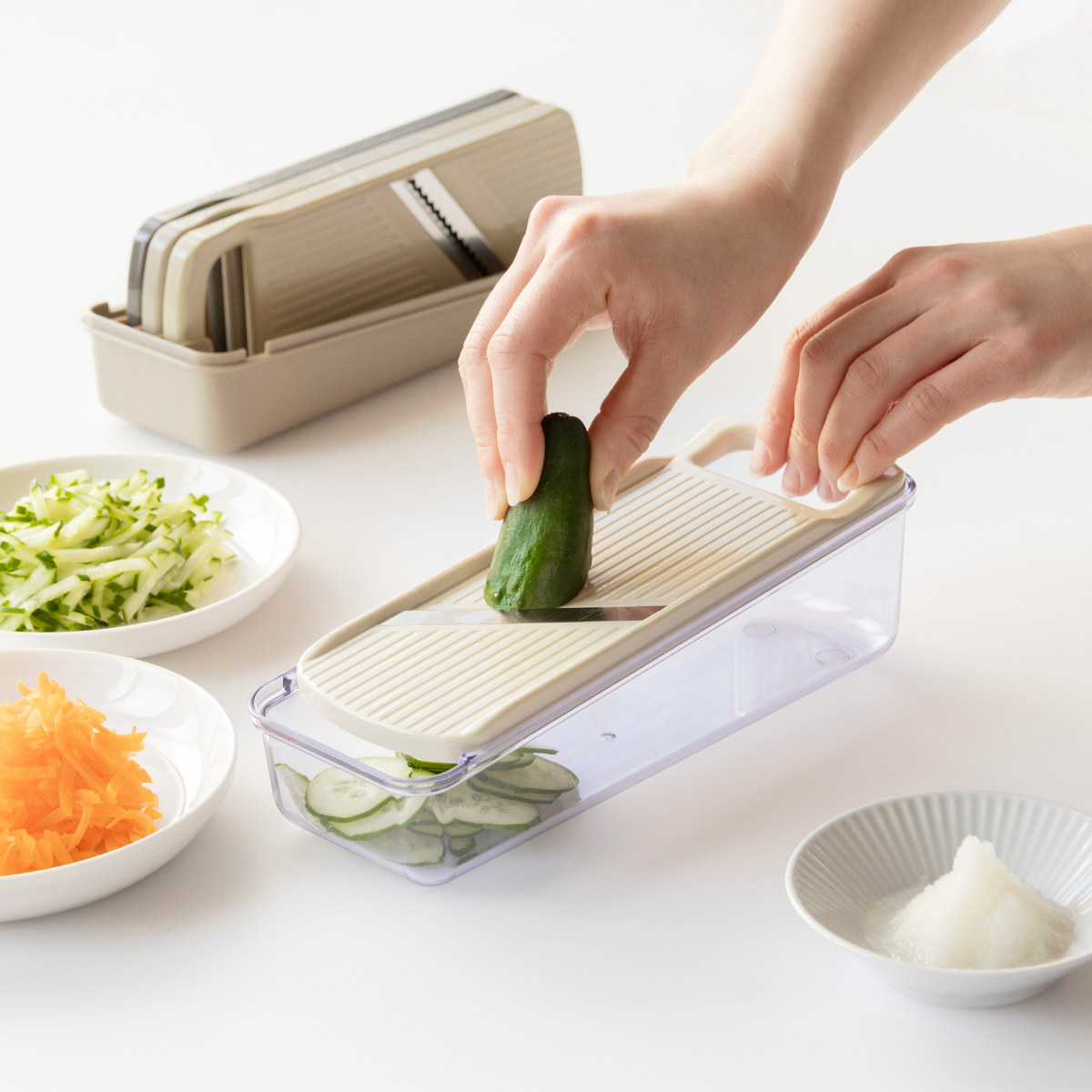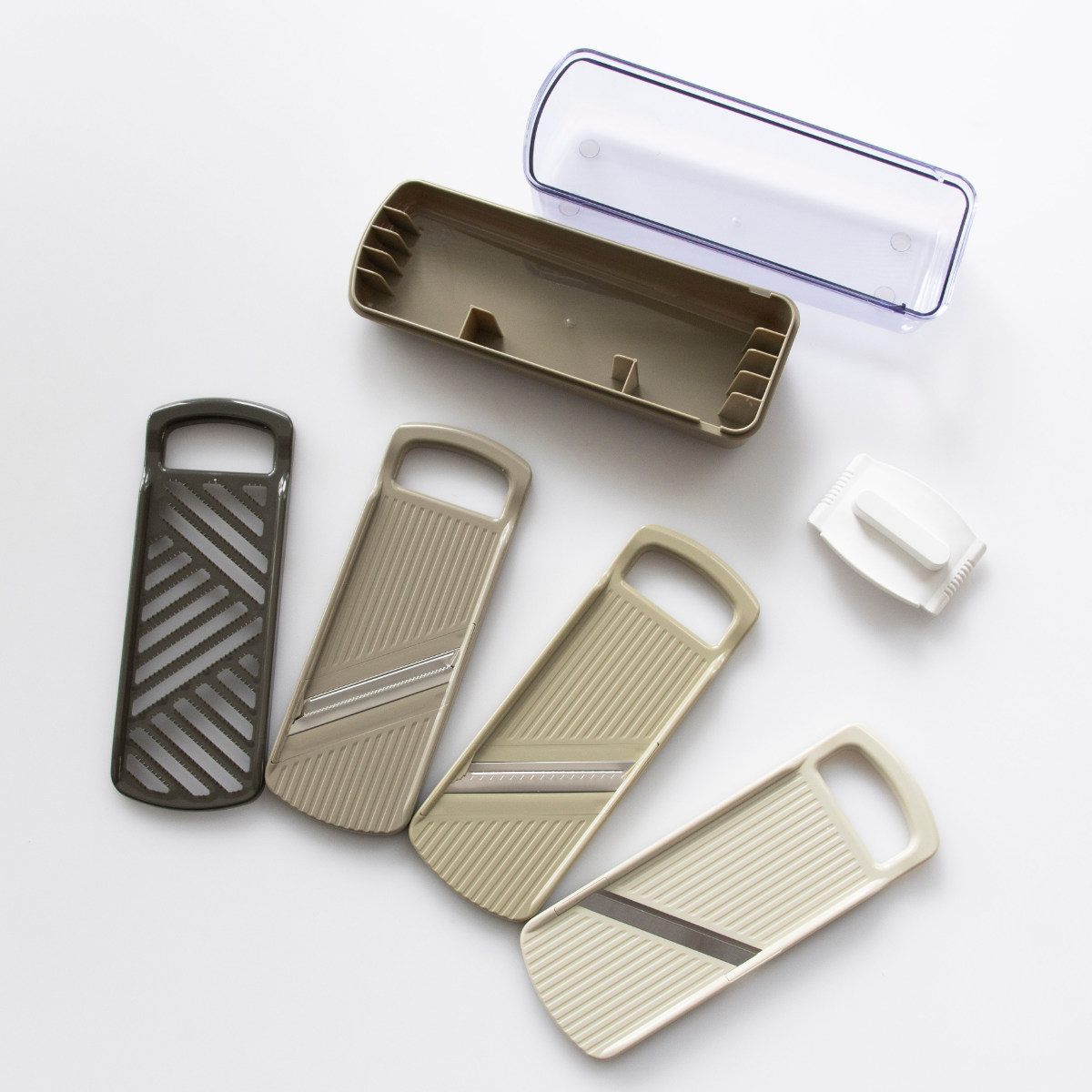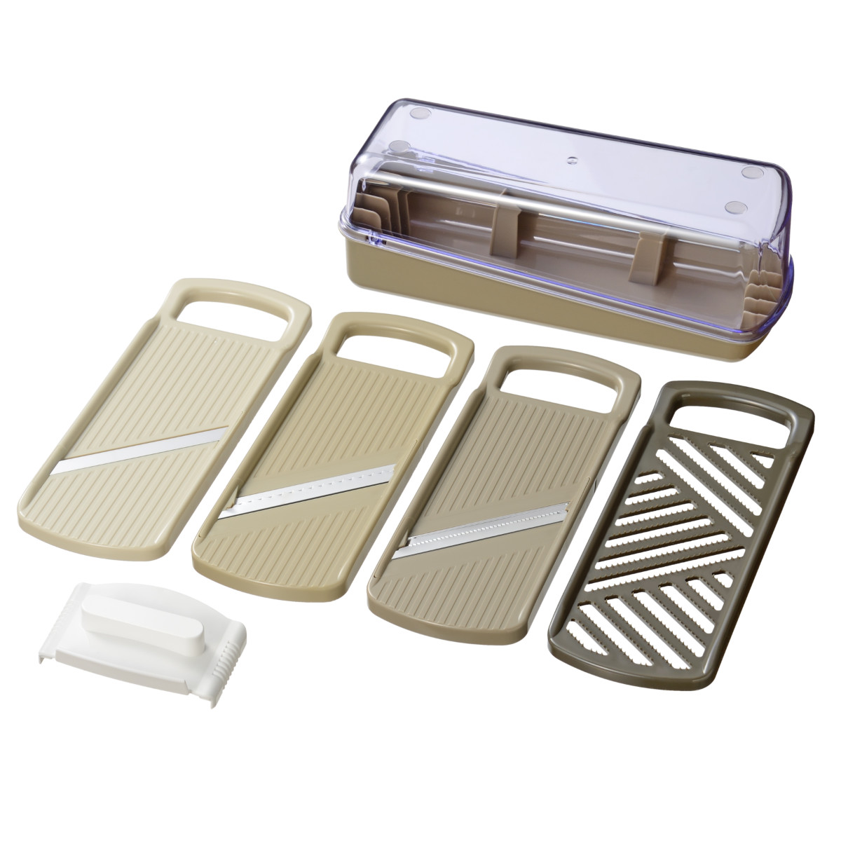 スライサーセット 7点セット モットプラス マルチスライサーセット 調理器セット 日本製 ( スライサー おろし器 受け皿 安全ホルダー 千切り器 おろし金 スライス 大根おろし 薬味おろし つま切り 千切り ケース付き 調理器具 )