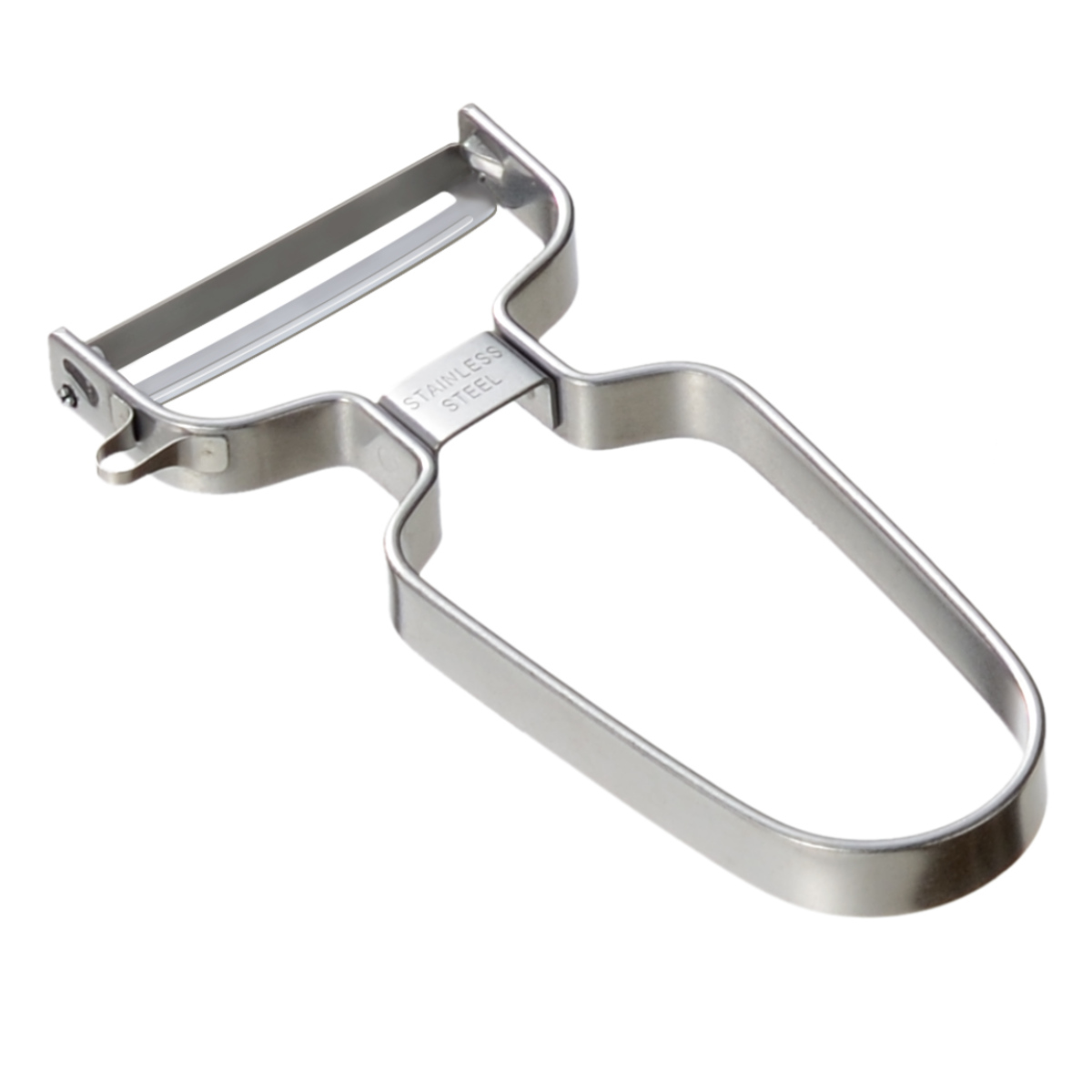 皮むき・芽取り・スライスが1個でできるステンレスピーラー付きです。じゃがいもやにんじんなどの皮むきはもちろん、じゃがいもの芽取りや、野菜サラダづくりにも便利です。