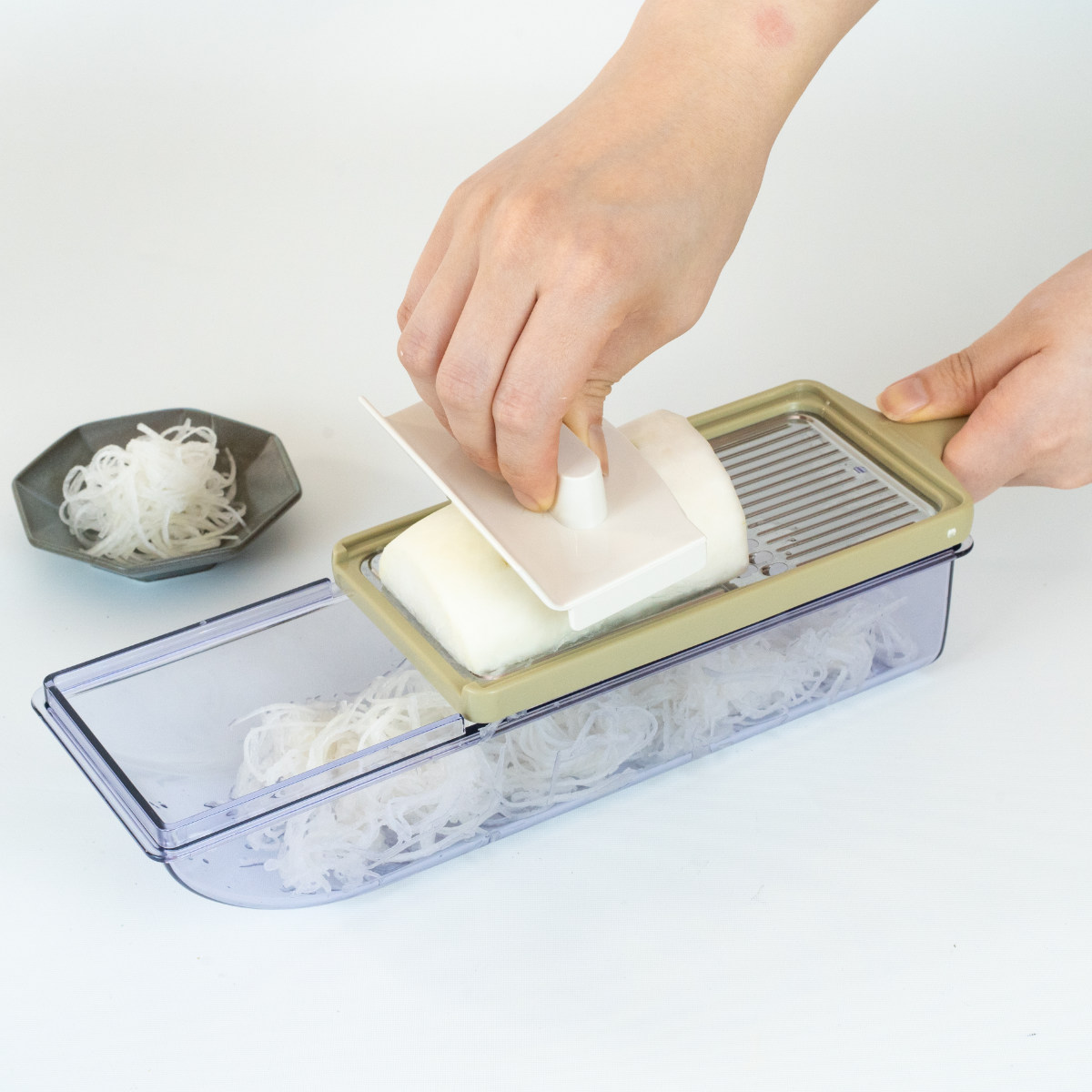 | 内容量 | スライサー、千切り・つま切り、おろし、三徳ピーラー、安全ホルダー、収納ケース、容器 各1個 |
