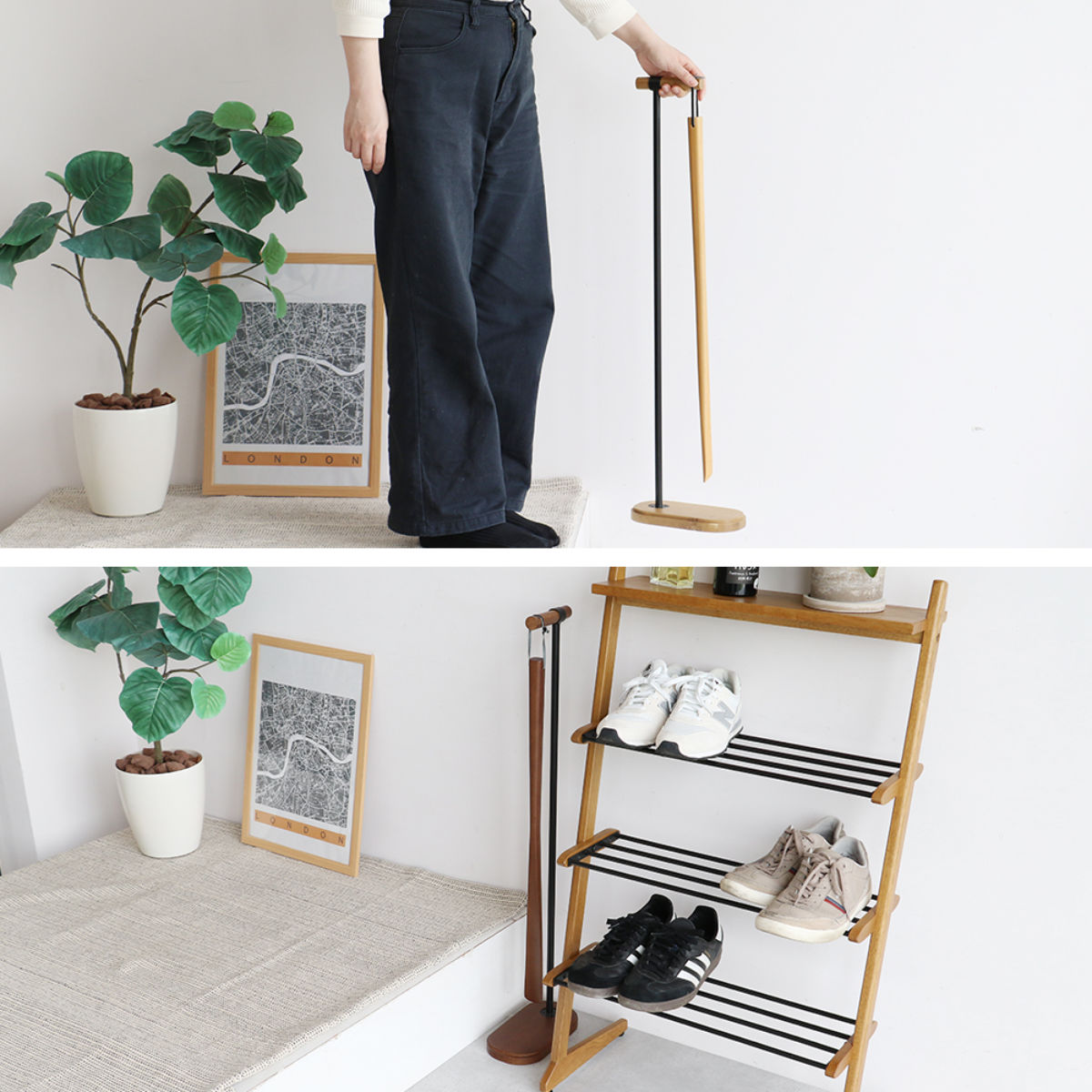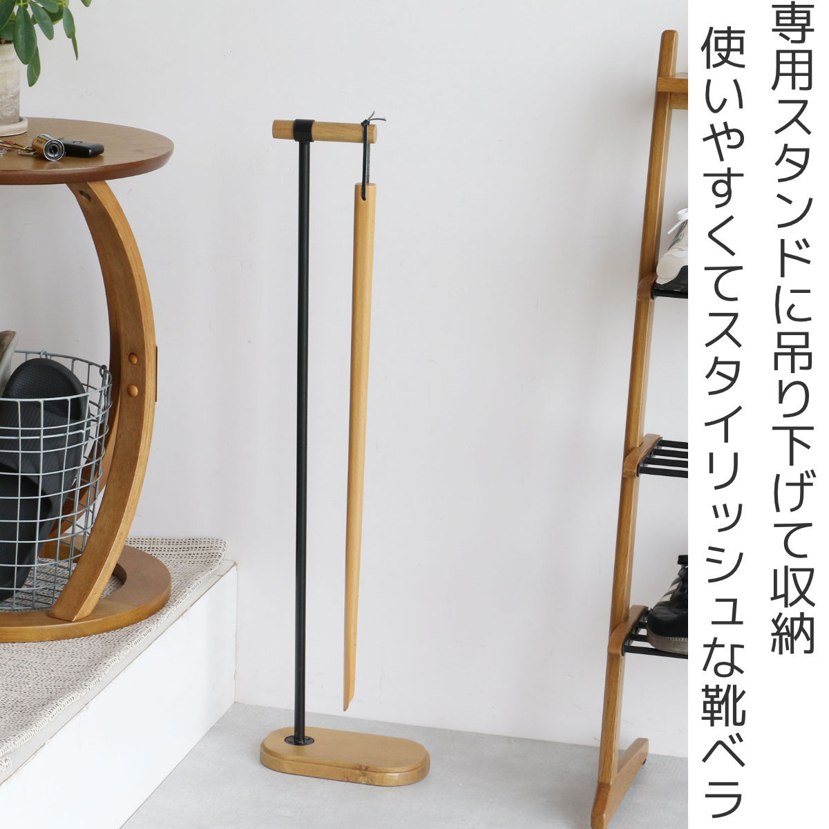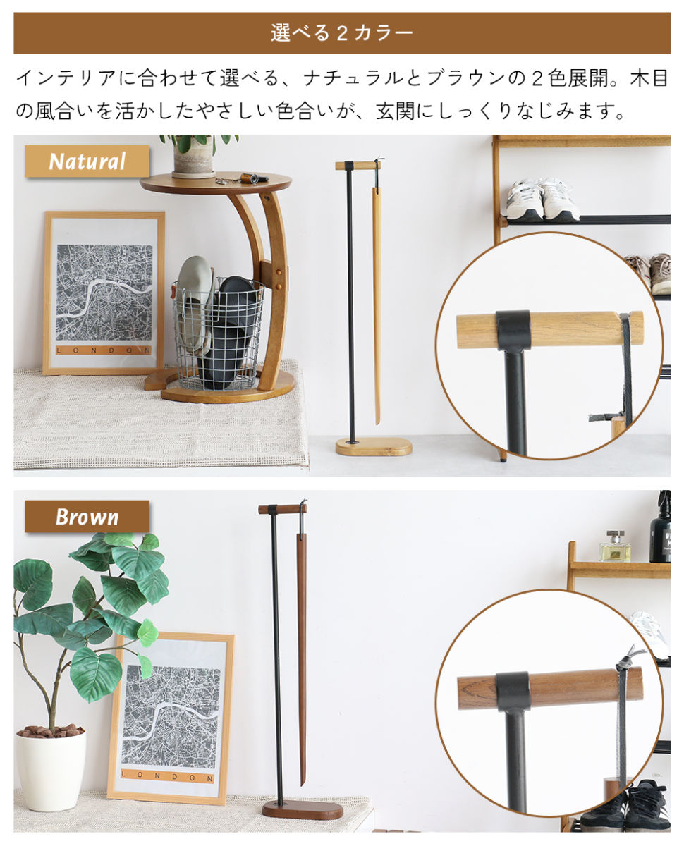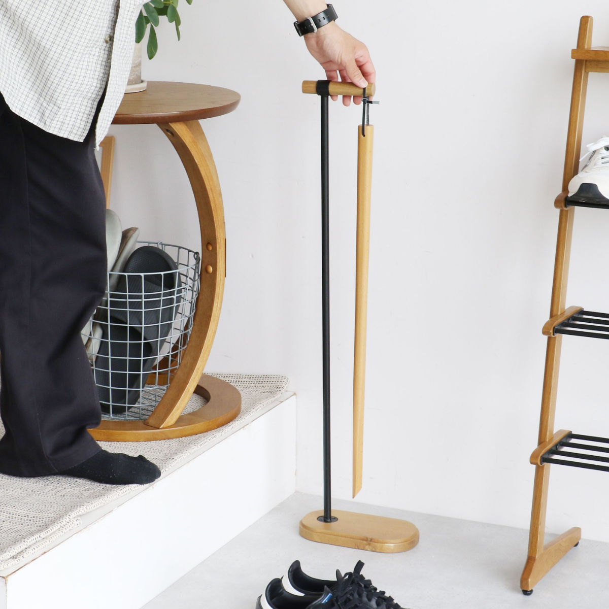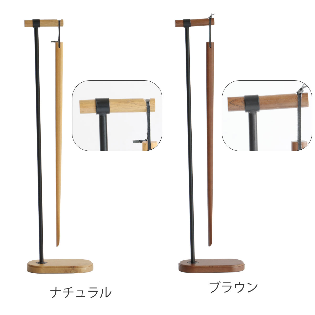 靴べら ロング Shoehorn MIX 木製 ( 靴ベラ 天然木 立ったまま 使える 軽い スタンド付き スリム おしゃれ 玄関周り シューズクローク 靴 シューズ用品 玄関小物 スタイリッシュ 完成品 ) 【ブラウン】