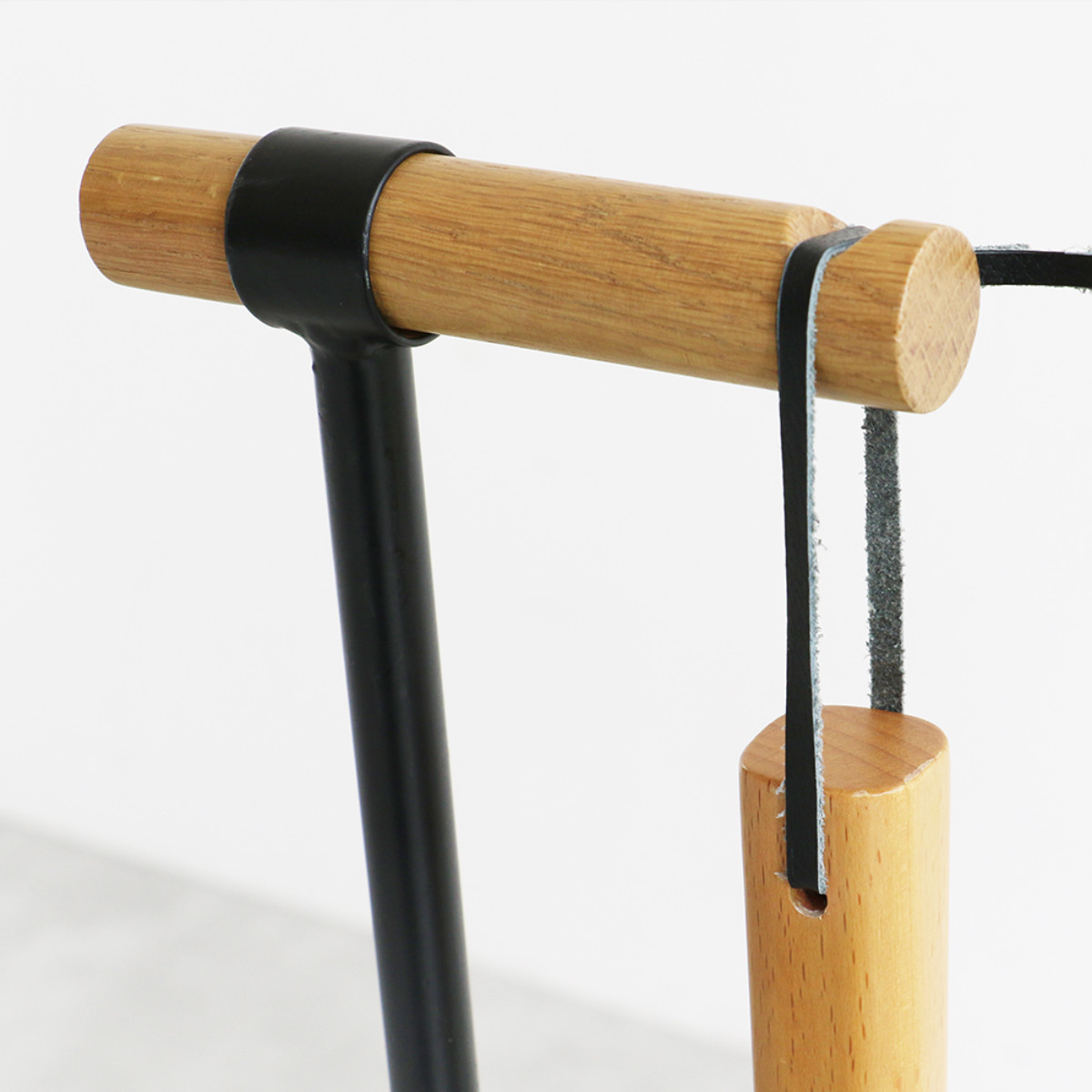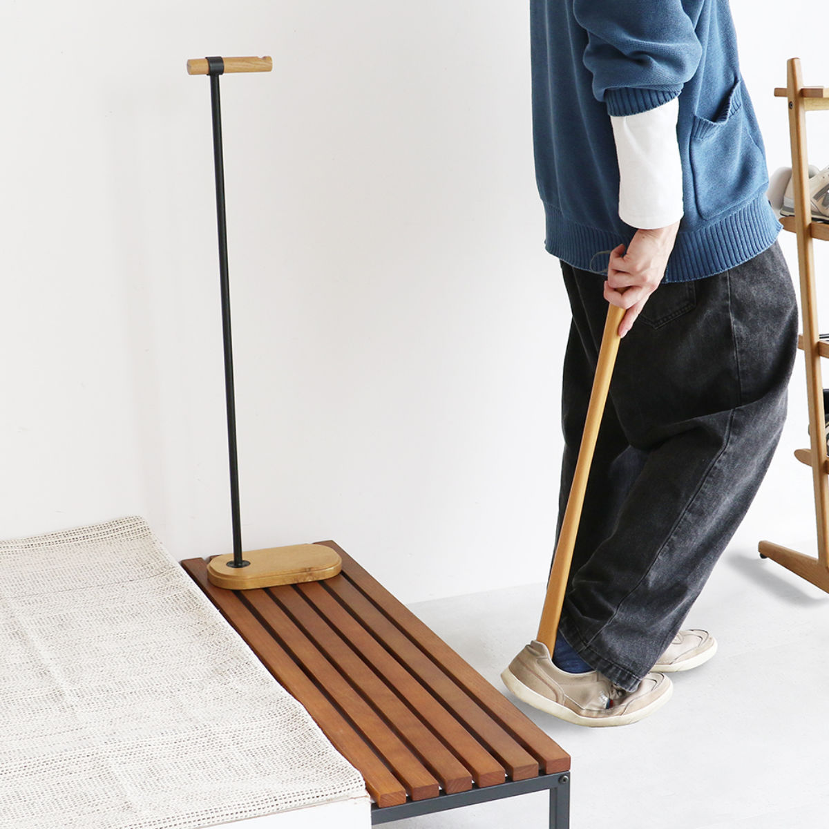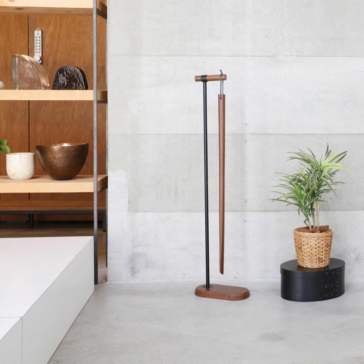 天然木のぬくもりとスチールの洗練された質感が絶妙に調和したデザインの靴ベラです。異素材の組み合わせが、玄関に上質な存在感と個性をプラスします。