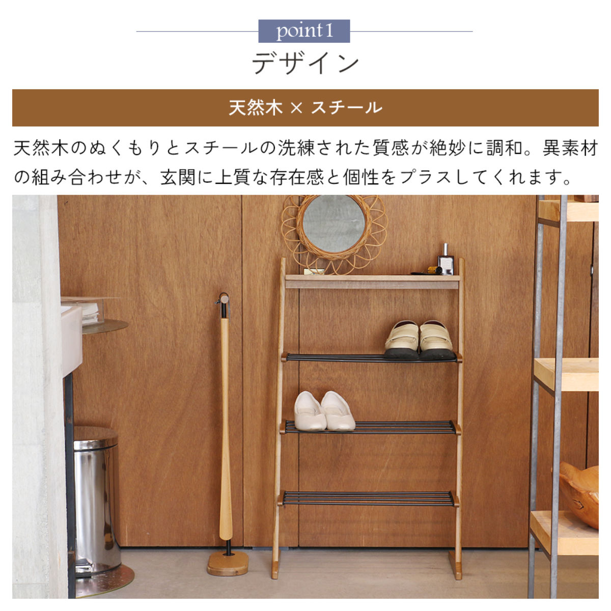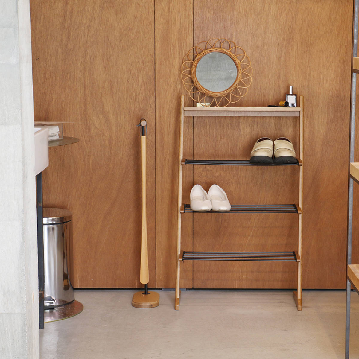| 材質 | ベース:天然木(アッシュ材)、金属(スチール) .靴ベラ:天然木(ビーチ材) 塗料:ラッカー塗装、焼付け塗装 |