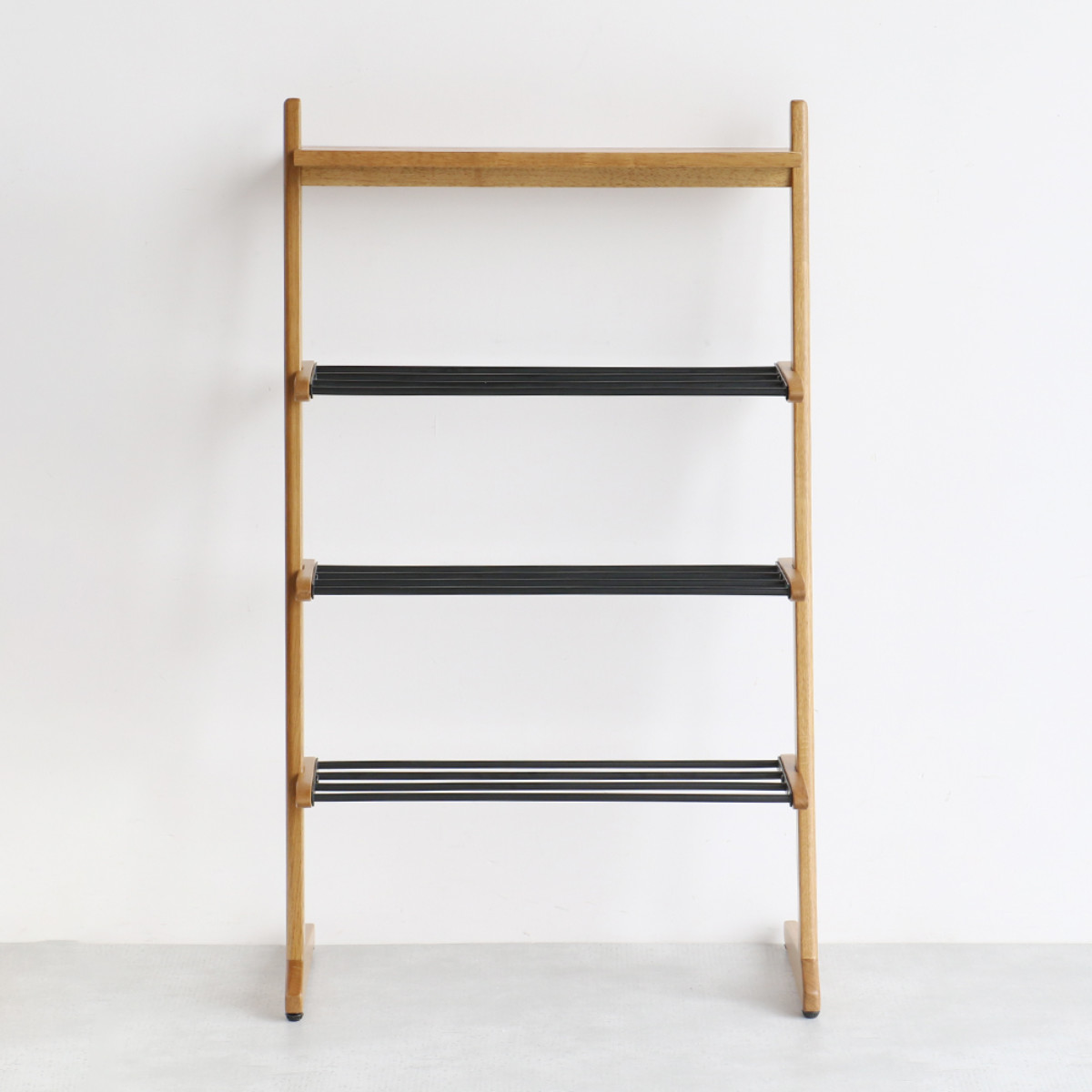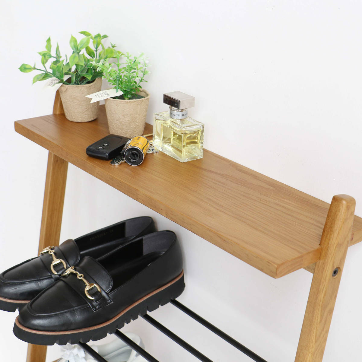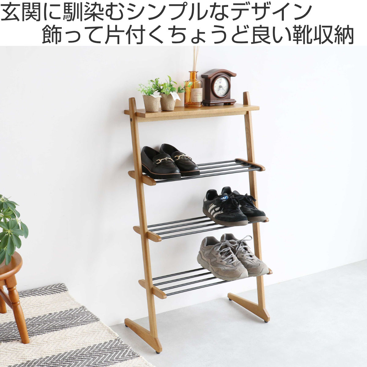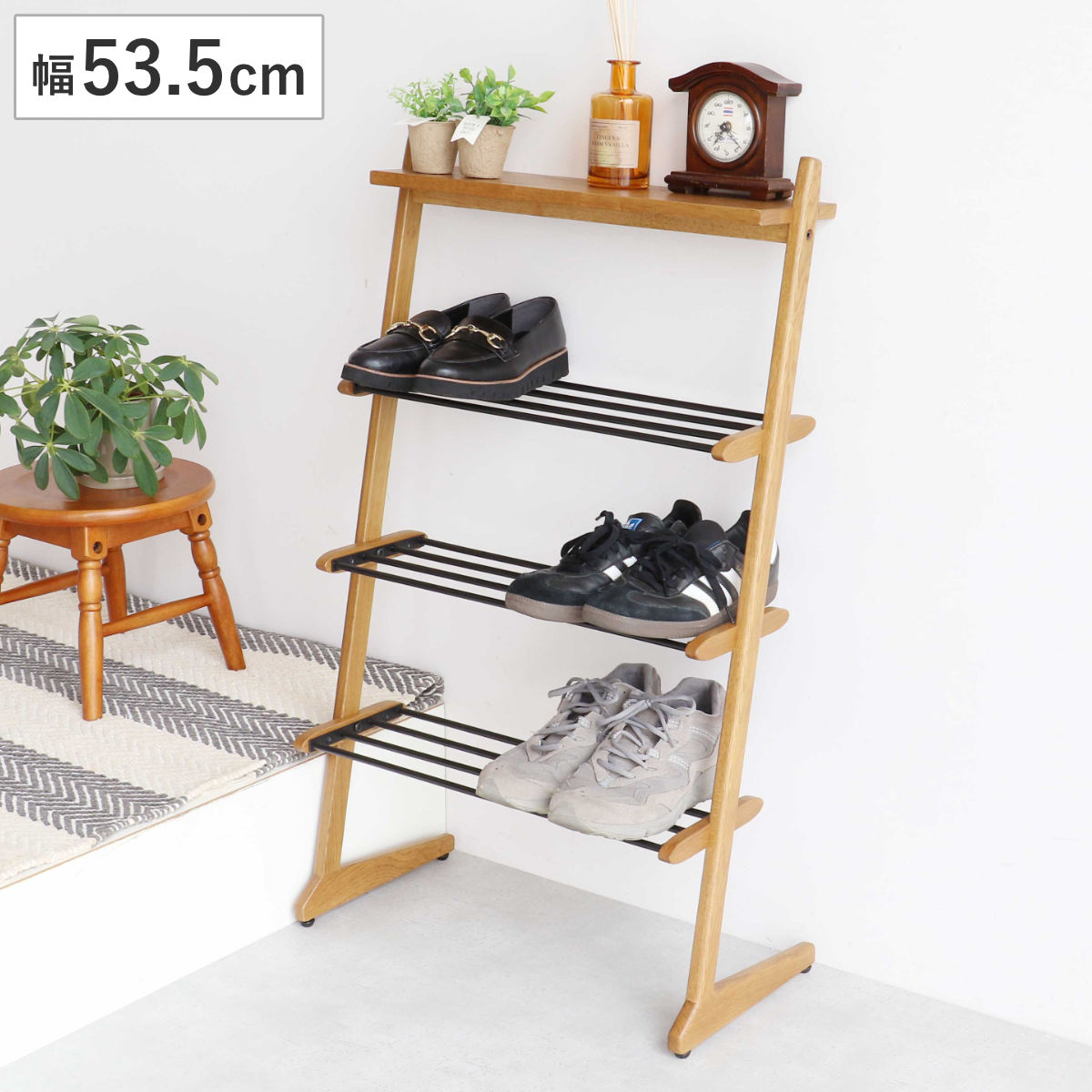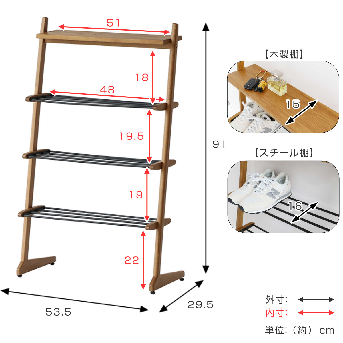 シューズラック Shoes Rack 木製 省スペース ( 靴 収納 ラック 下駄箱 靴箱 4段 オープンラック 玄関 コンパクト おしゃれ オーク 天然木 一人暮らし 後付け ラダーラック シューズ アイアン インテリア ディスプレイ 8足 家具 )