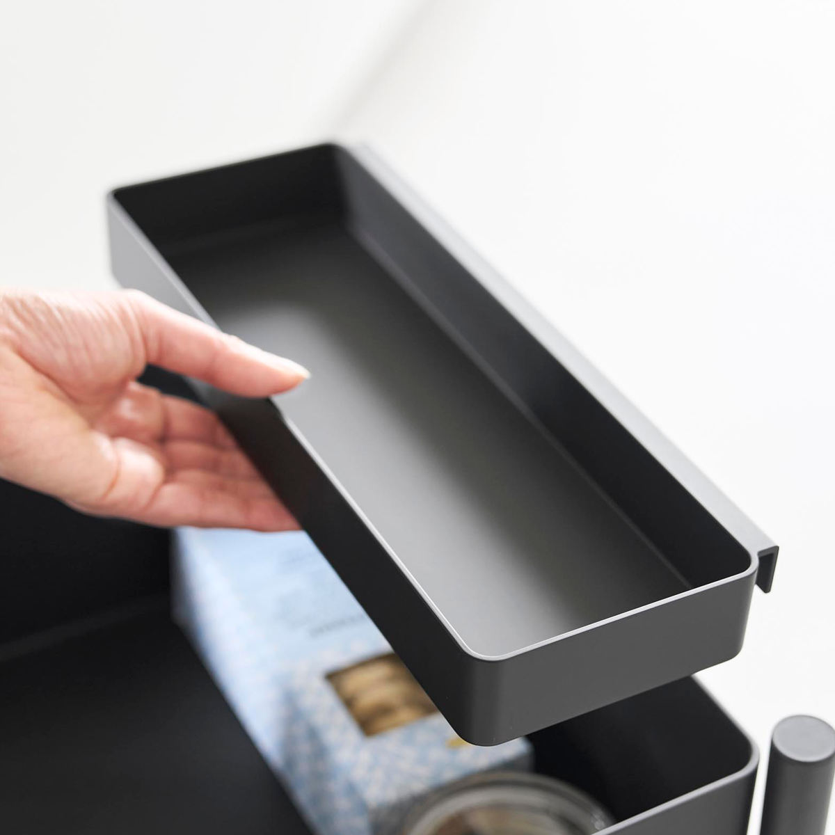 山崎実業 tower 小物トレー付き下段が棚の収納ワゴン 2段 タワー ( 4903208101851 タワーシリーズ 収納ワゴン 2段ワゴン 小物トレー 収納 ワゴン コンパクト キャスター付き 収納ラック ラック 二段 棚 ) 【ブラック】