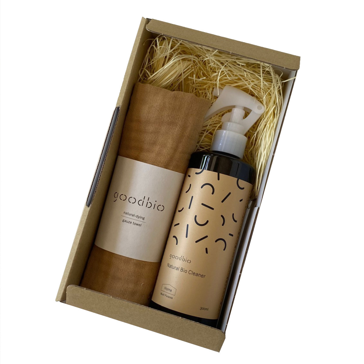 環境にやさしい微生物クリーナーグッドバイオのマルチクリーナーと、肌触りのよいガーゼタオルを組み合わせた特別なギフトセットです。大切な人へ“清潔と心地よさ”を贈ります。