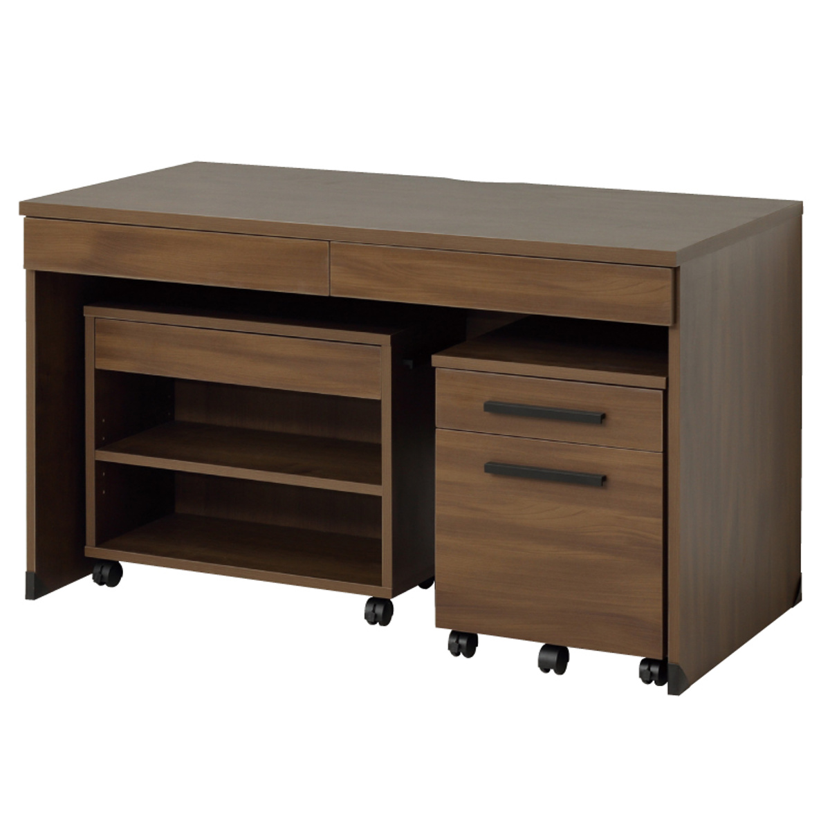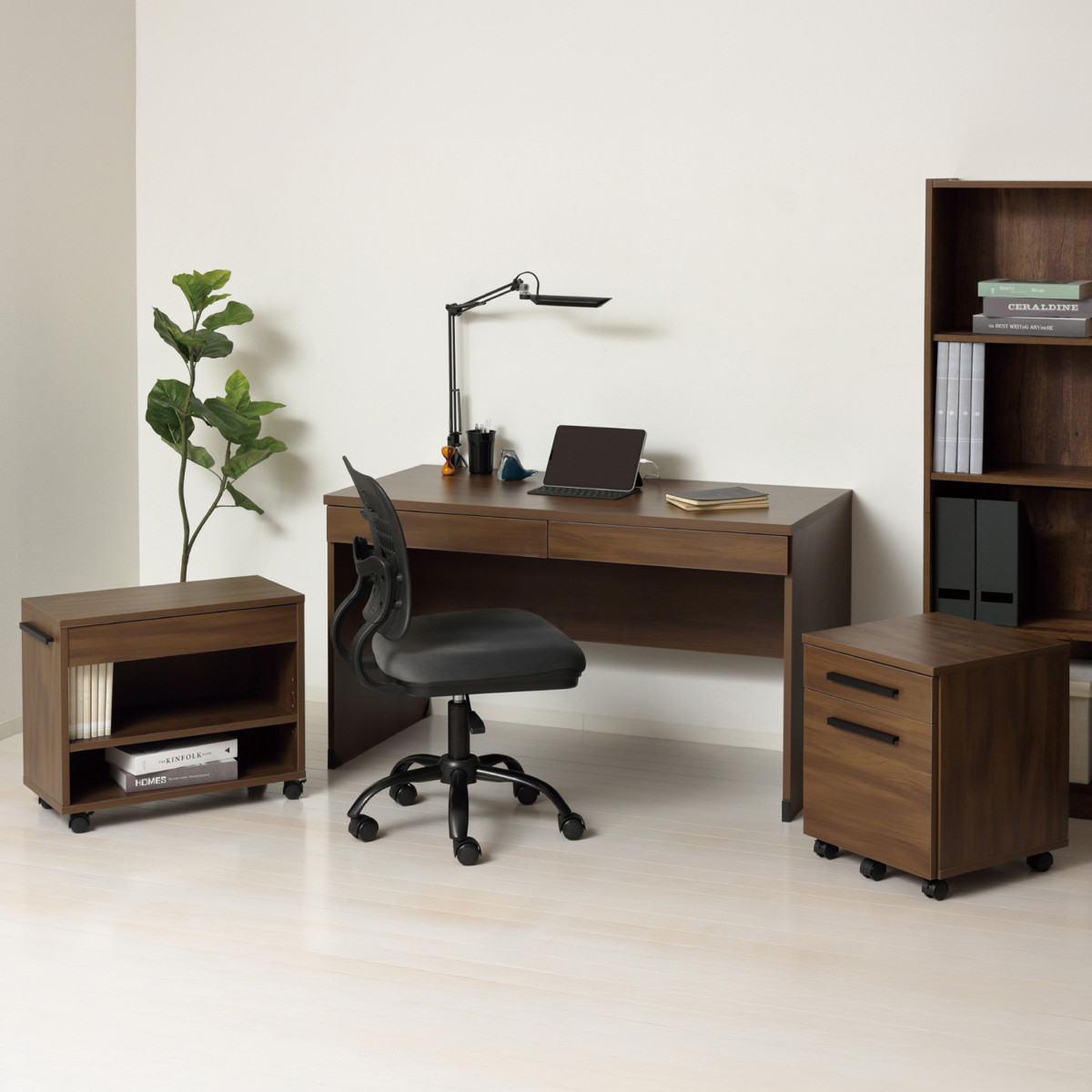 デスクにチェストとラックが付いている3点セットです。チェストとラックは好きな位置に動かすことができ、レイアウトを自分好みにしたい方やデスク周りを統一して揃えたい方におすすめです。