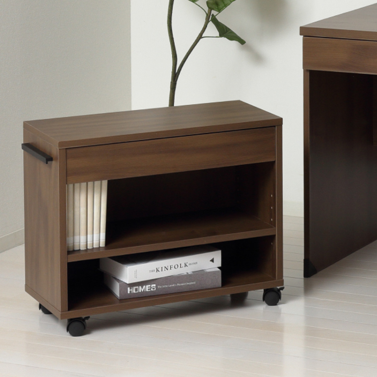 チェストには引き出しが2杯付いており用途に合わせて使い別けながら収納できます。キャスター付きなので移動が楽に行えます。