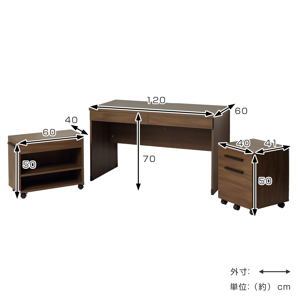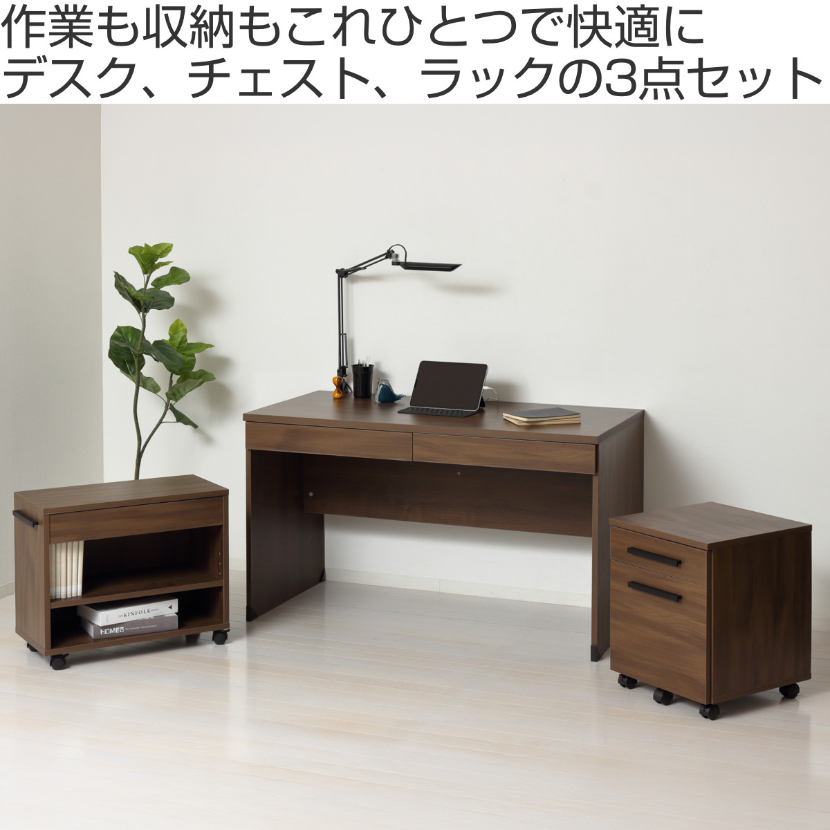 パソコンデスク 3点セット チェスト付き ラック付き クラッシー ( デスク 幅120cm チェスト ラック キャビネット デスクセット ユニットデスク 木目調 システムデスク オープンラック キャスター付き 引き出し 収納 A4サイズ )