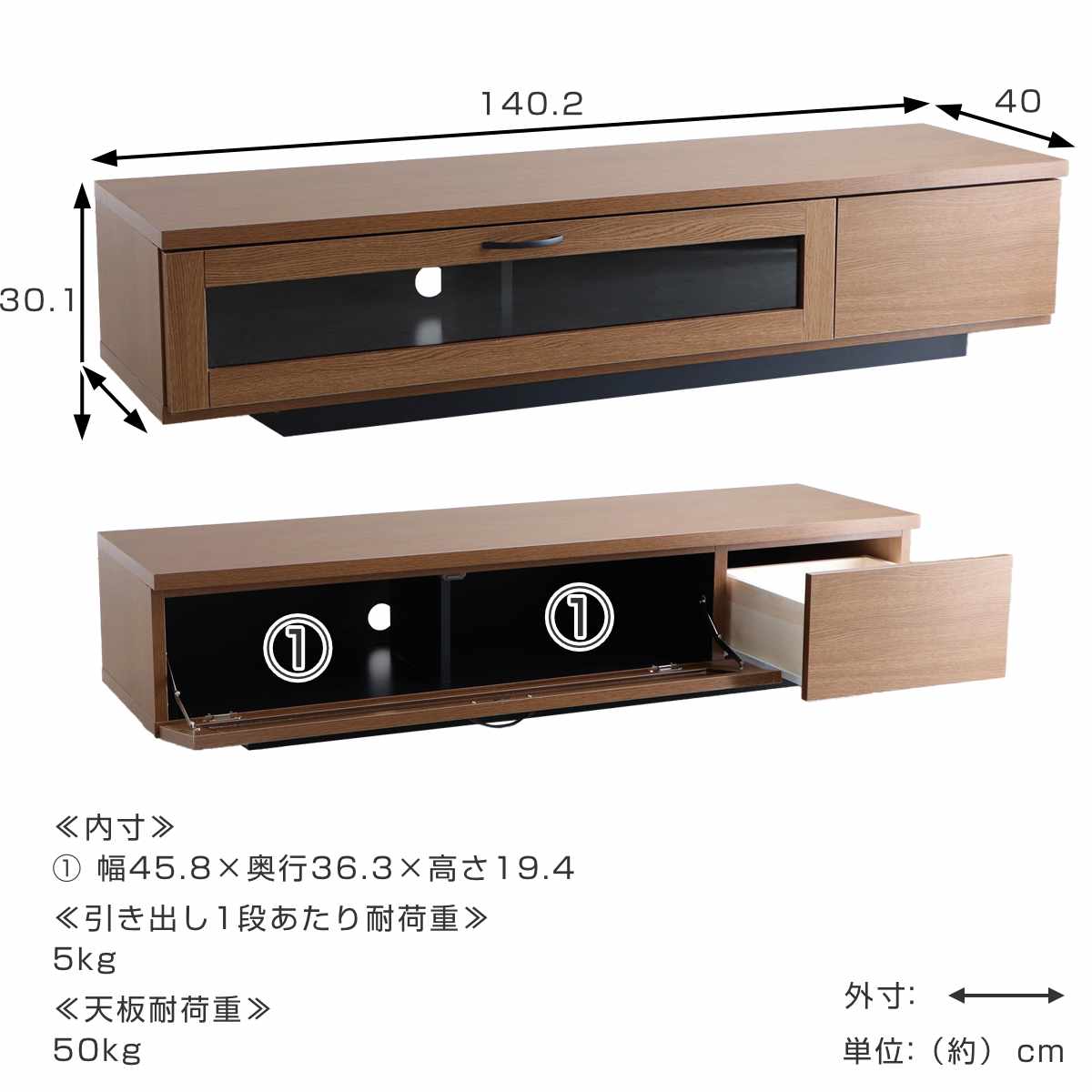 | サイズ | 約 幅140.2×奥行40×高さ30.1(cm) |