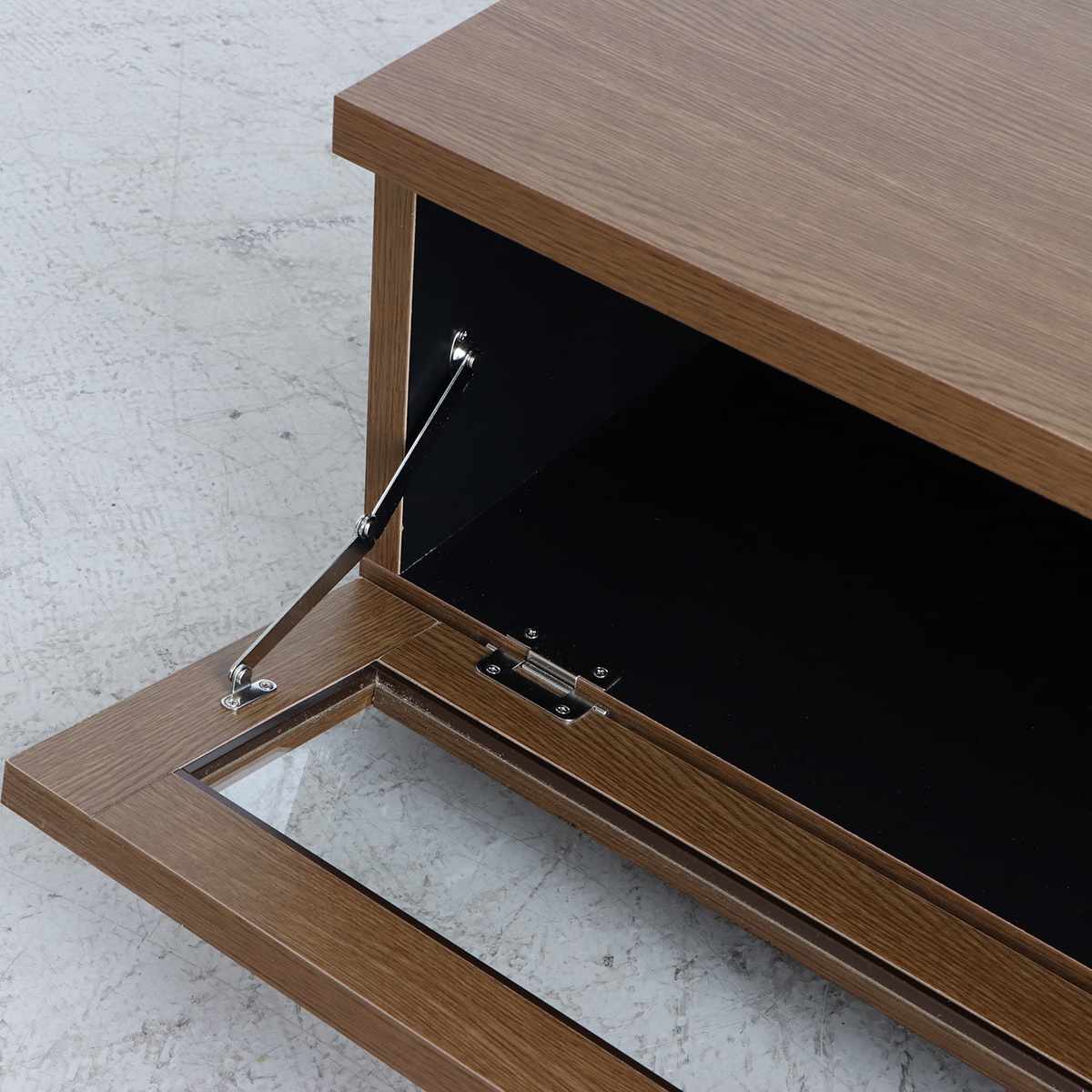 扉が広範囲に開くので、物の出し入れがしやすいフラップ扉。AV機器の設置にもオススメです。