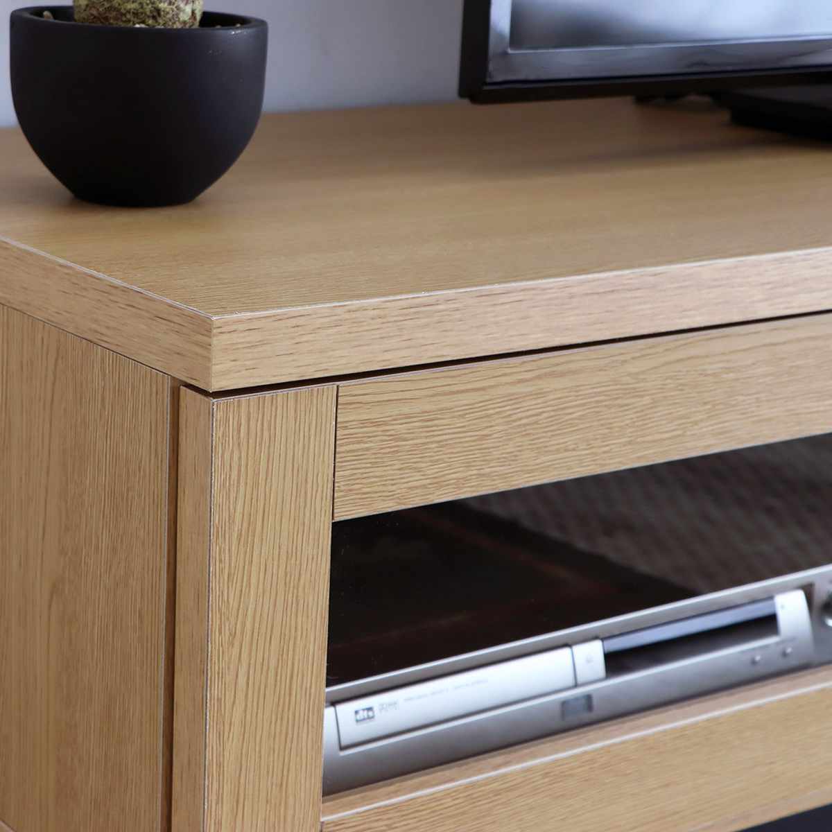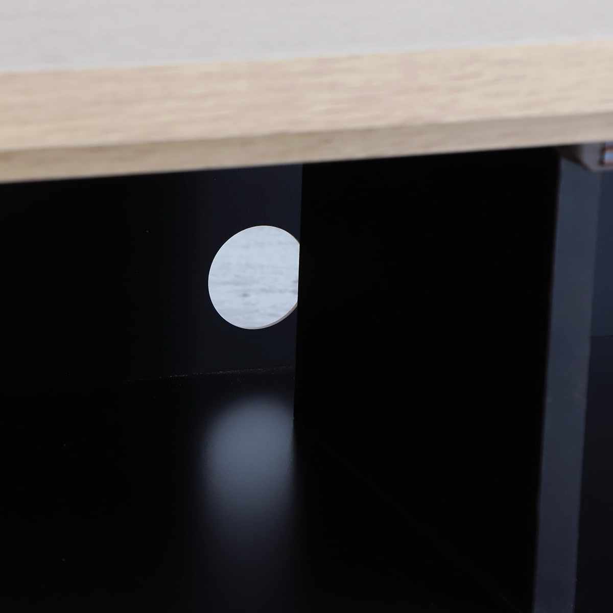 背面は化粧仕上げでどこから見ても美しく、場所を選ばず設置可能。コード穴が付いているので、配線を背面に逃がすことができます。