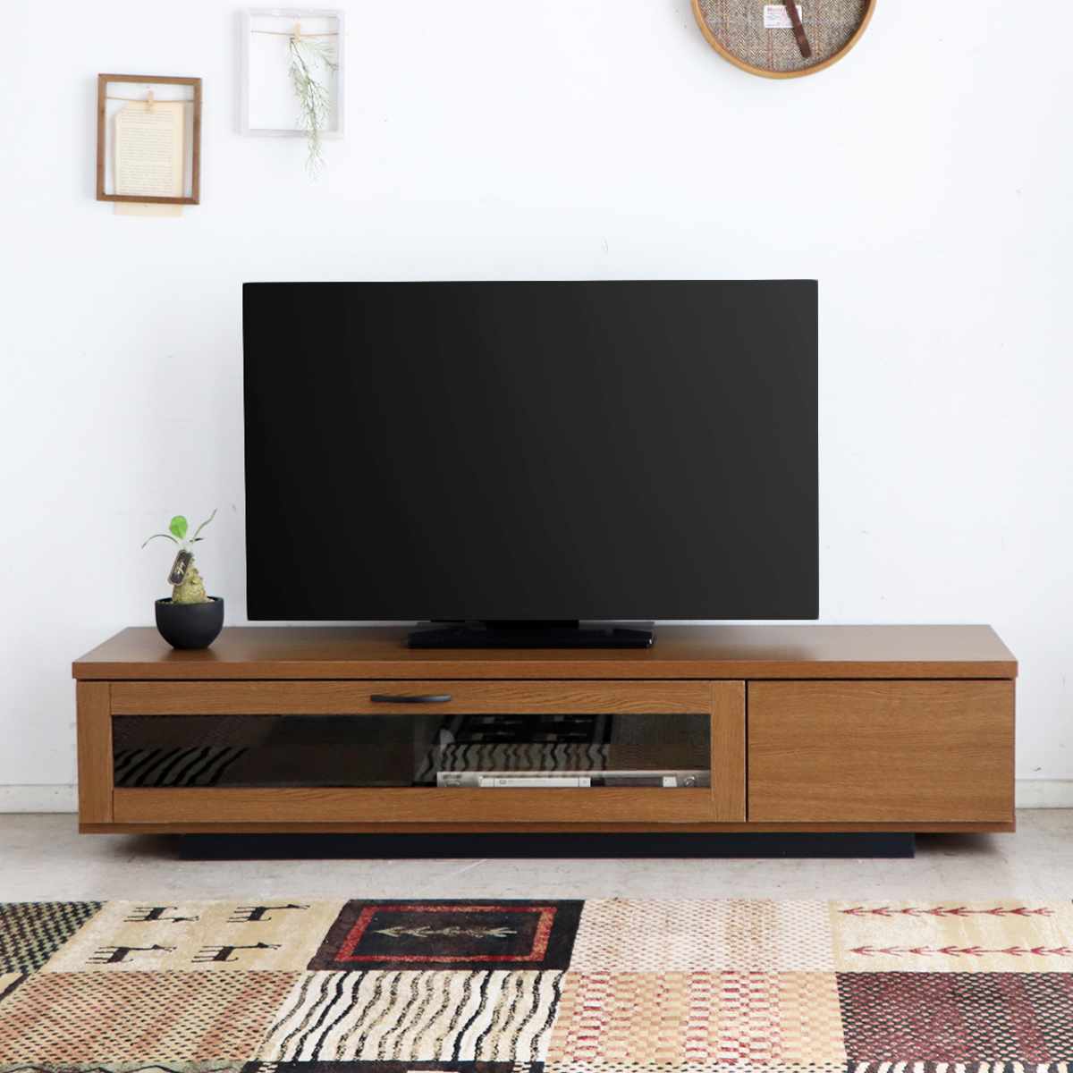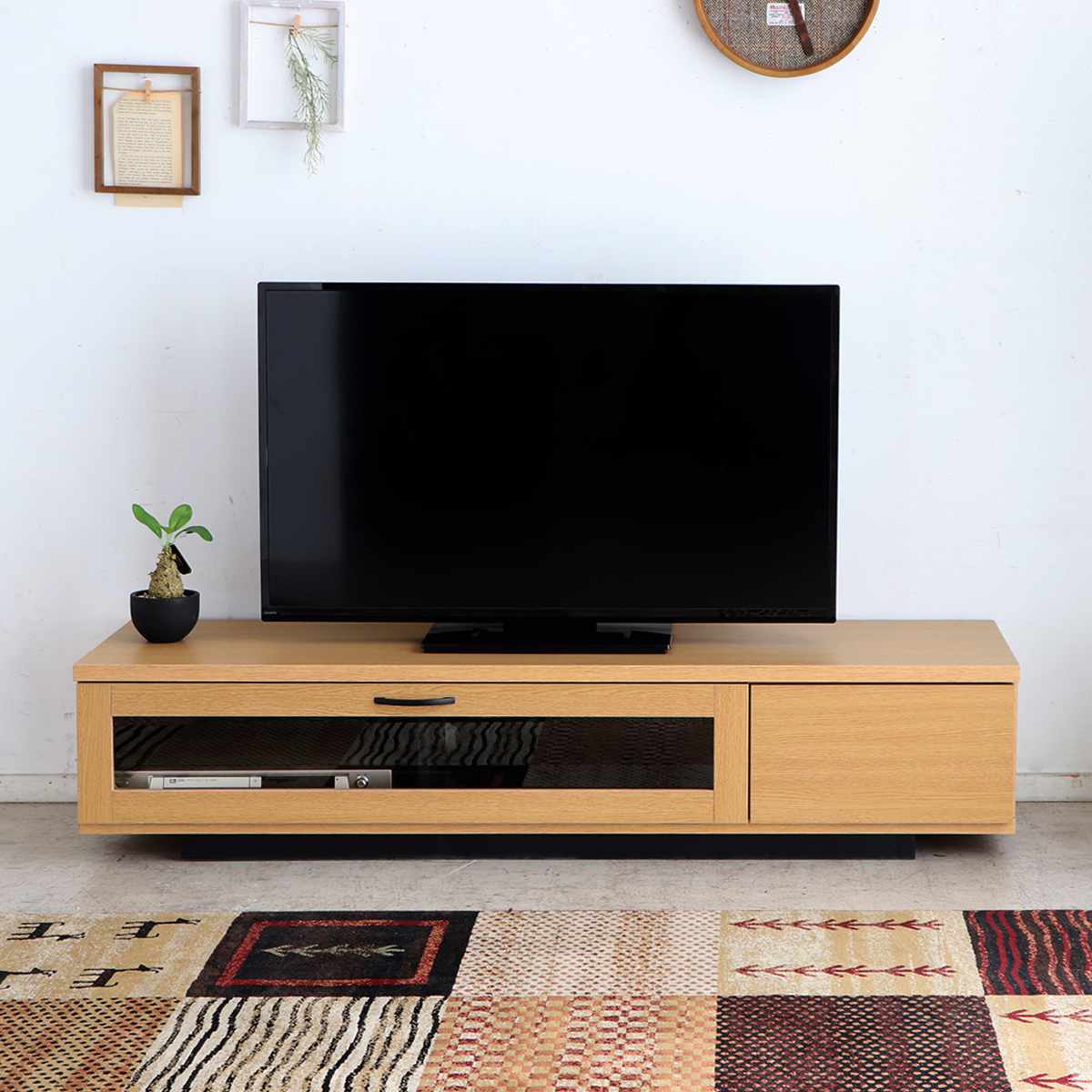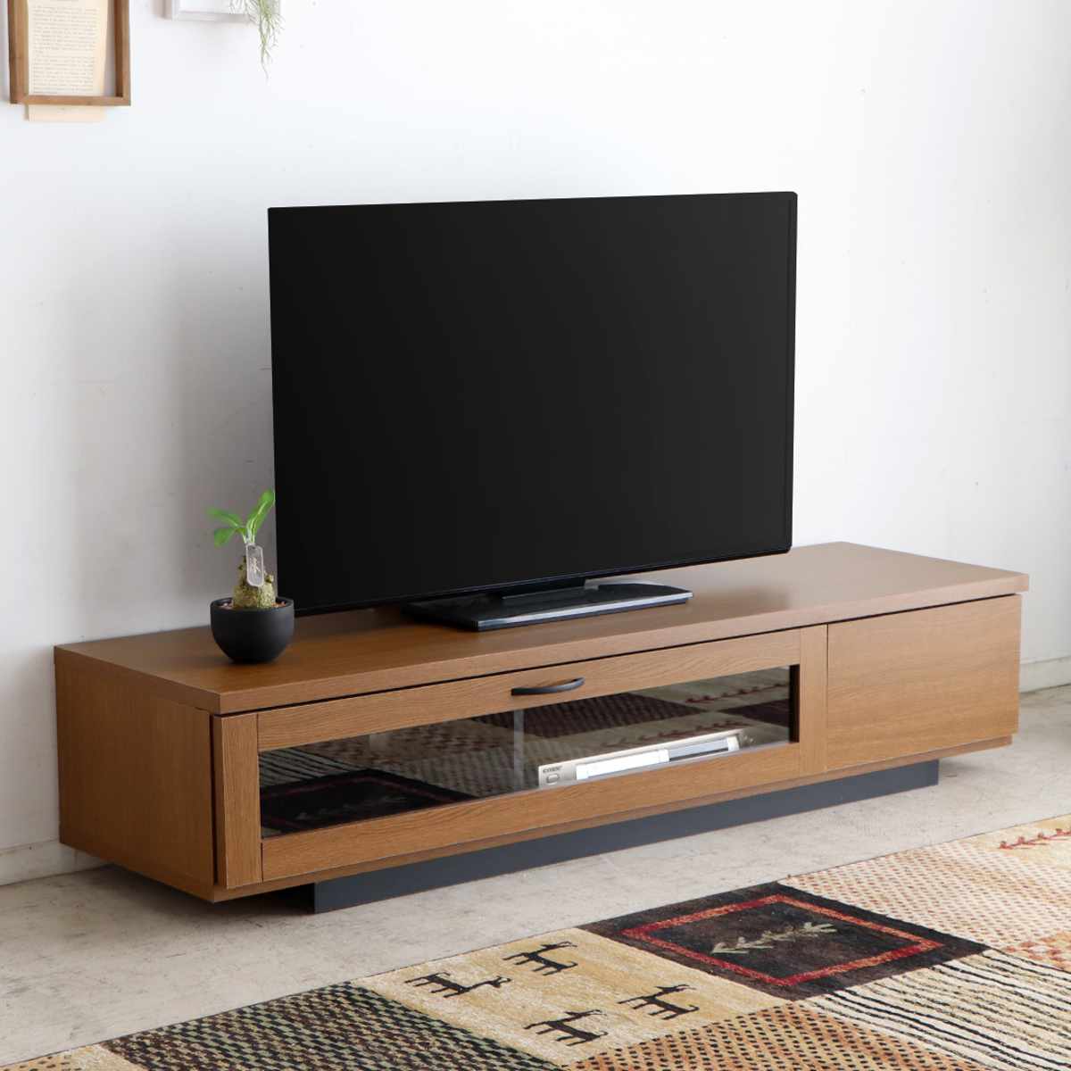 シンプルで無駄のないデザインが上質な雰囲気を漂わせるテレビ台です。空間をすっきりと見せながら、木のぬくもりを感じさせるナチュラルな風合いが魅力。引出しとフラップ扉を備え、デザイン性と収納力を兼ね備えています。