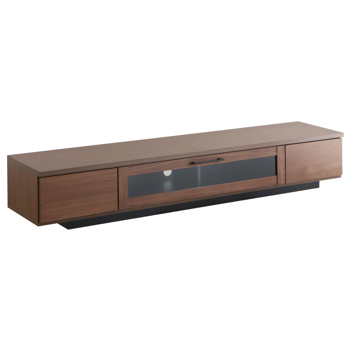 落ち着いた木目調とスッキリとしたフォルムが魅力的なローボードです。高さを抑えたロータイプで、お部屋に開放感を与えながら大型テレビにもバランスよくフィットします。奥に配置した脚部が、まるで浮いているような軽やかさを演出します。