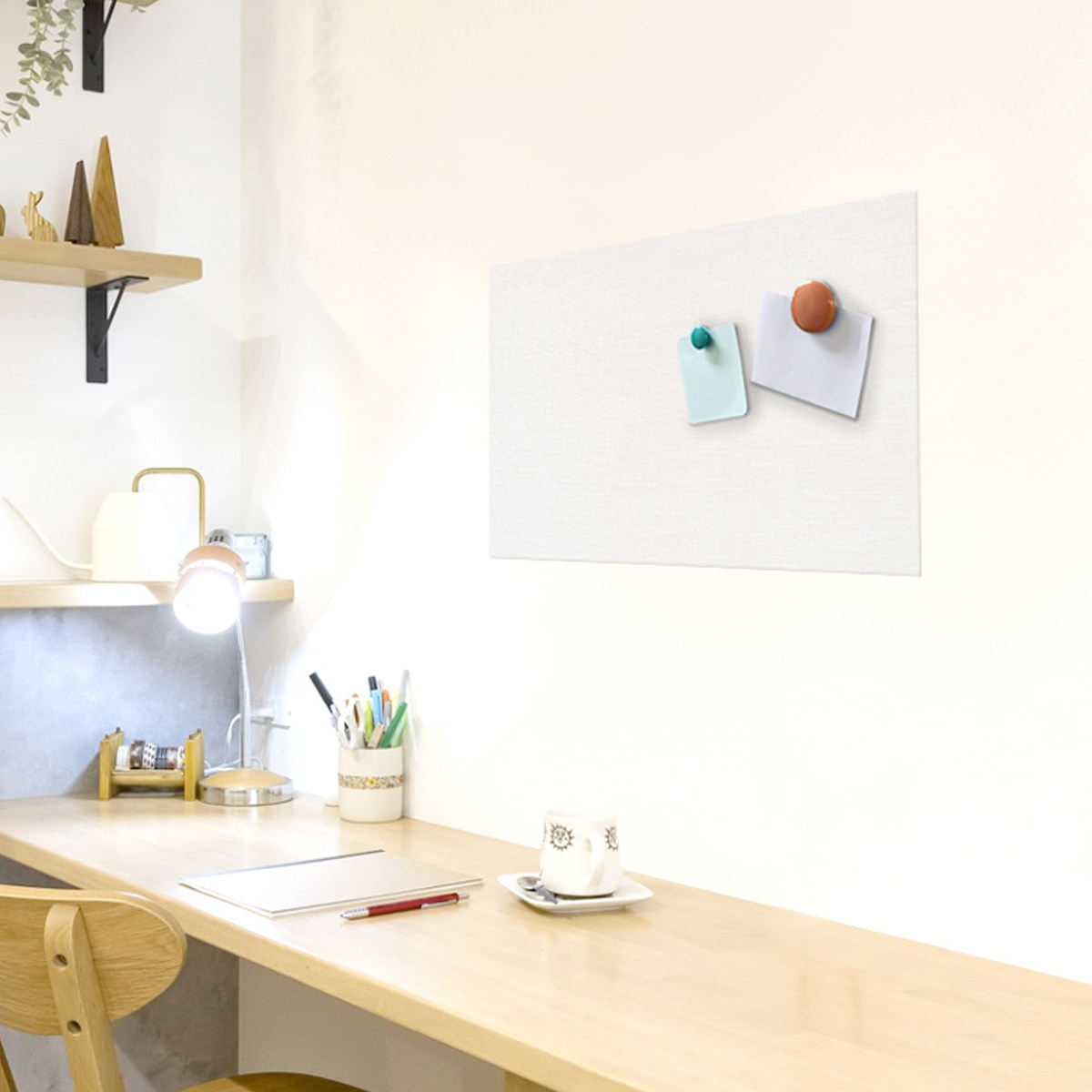 ワークスペースに貼れば、目の前がメモやプリントが貼れる掲示板になります。洗面所やダイニングで壁面収納、リビングや玄関で飾り棚など、アイデア次第で使い方が広がります。