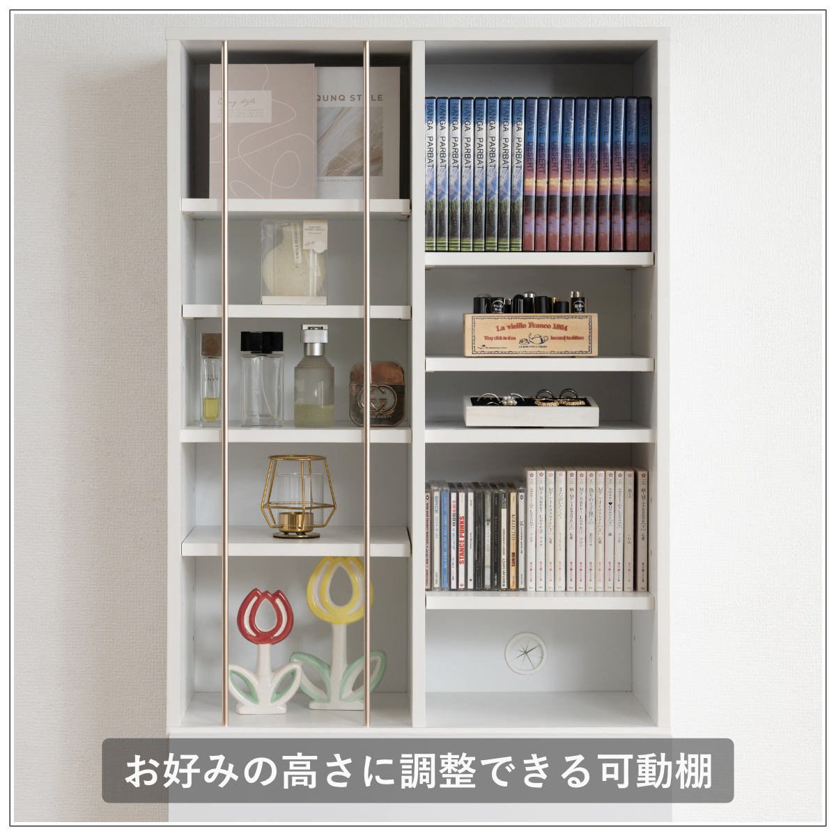 固定棚以外は棚板が動かせるので、本やフィギュアなどに合わせて高さを調整していただけます。