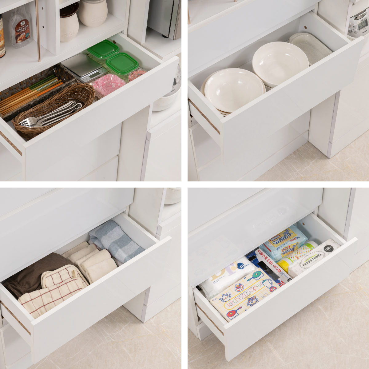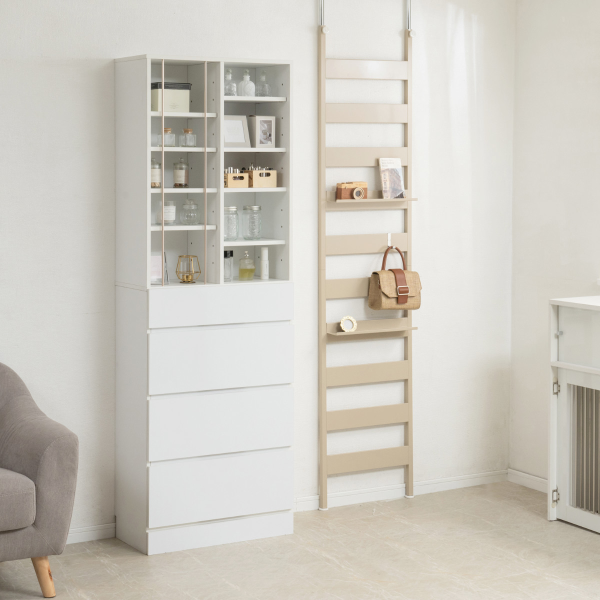 | 材質 | 前板:【ホワイト】ハイグロス化粧繊維板、【ナチュラル】強化プリント紙化粧繊維板 その他:強化プリント紙化粧繊維板 アクセントポール:アルミニウム(アルマイト加工) |
