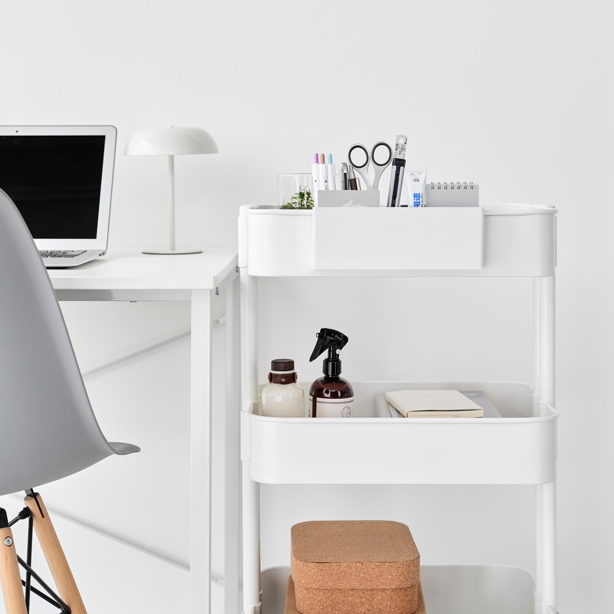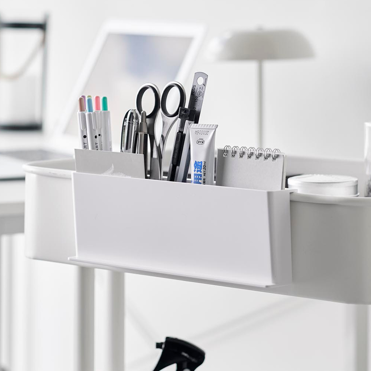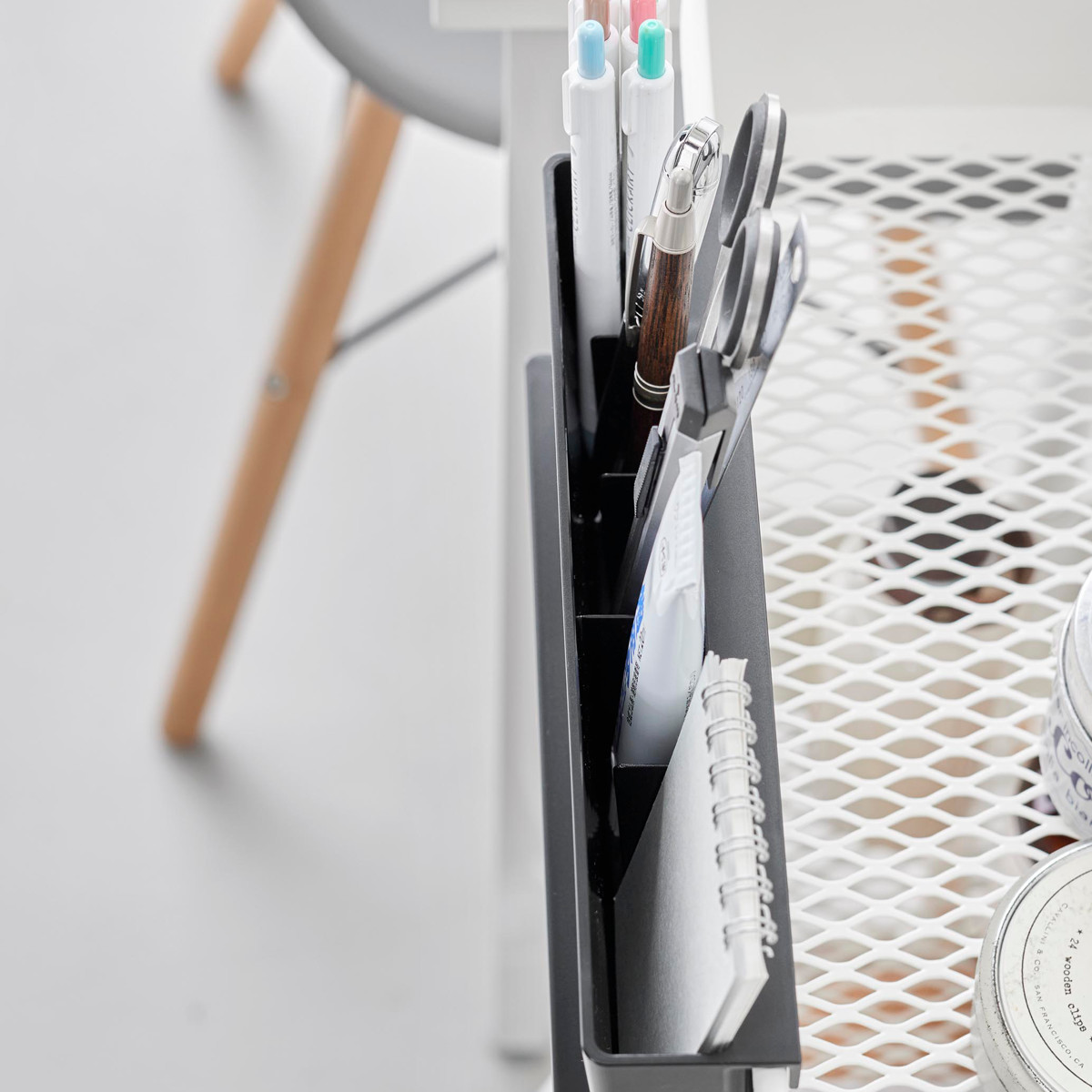 フック付きで、ワゴンやファイルボックスの側面に引っ掛けて使えるのも魅力です。収納スペースを無駄なく活用できます。