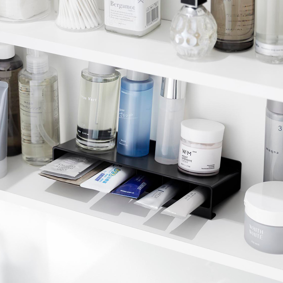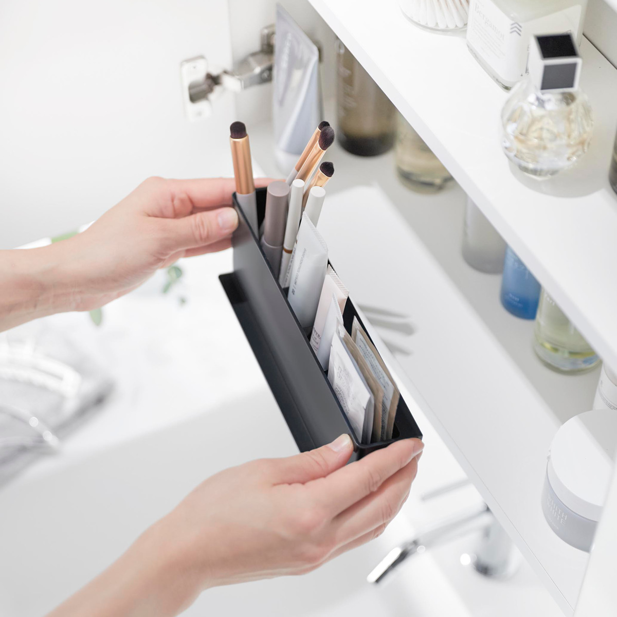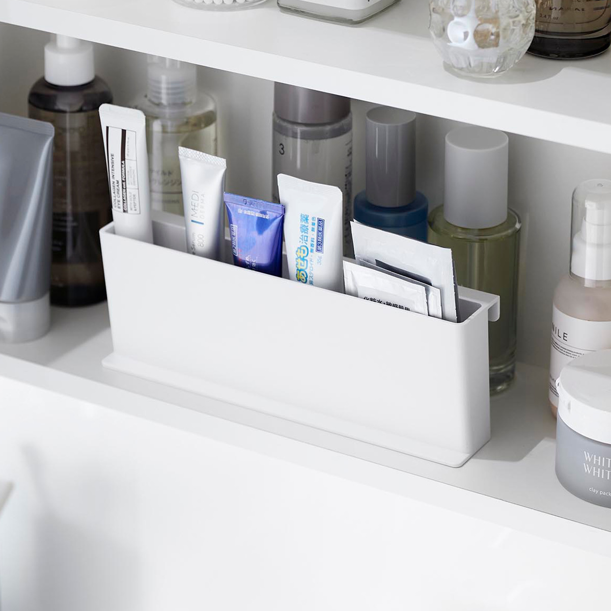メイク道具や日用品などの小物もまとめて収納でき、戸棚の中や洗面台周りがスッキリ整います。取り出しやすく整理しやすい設計です。