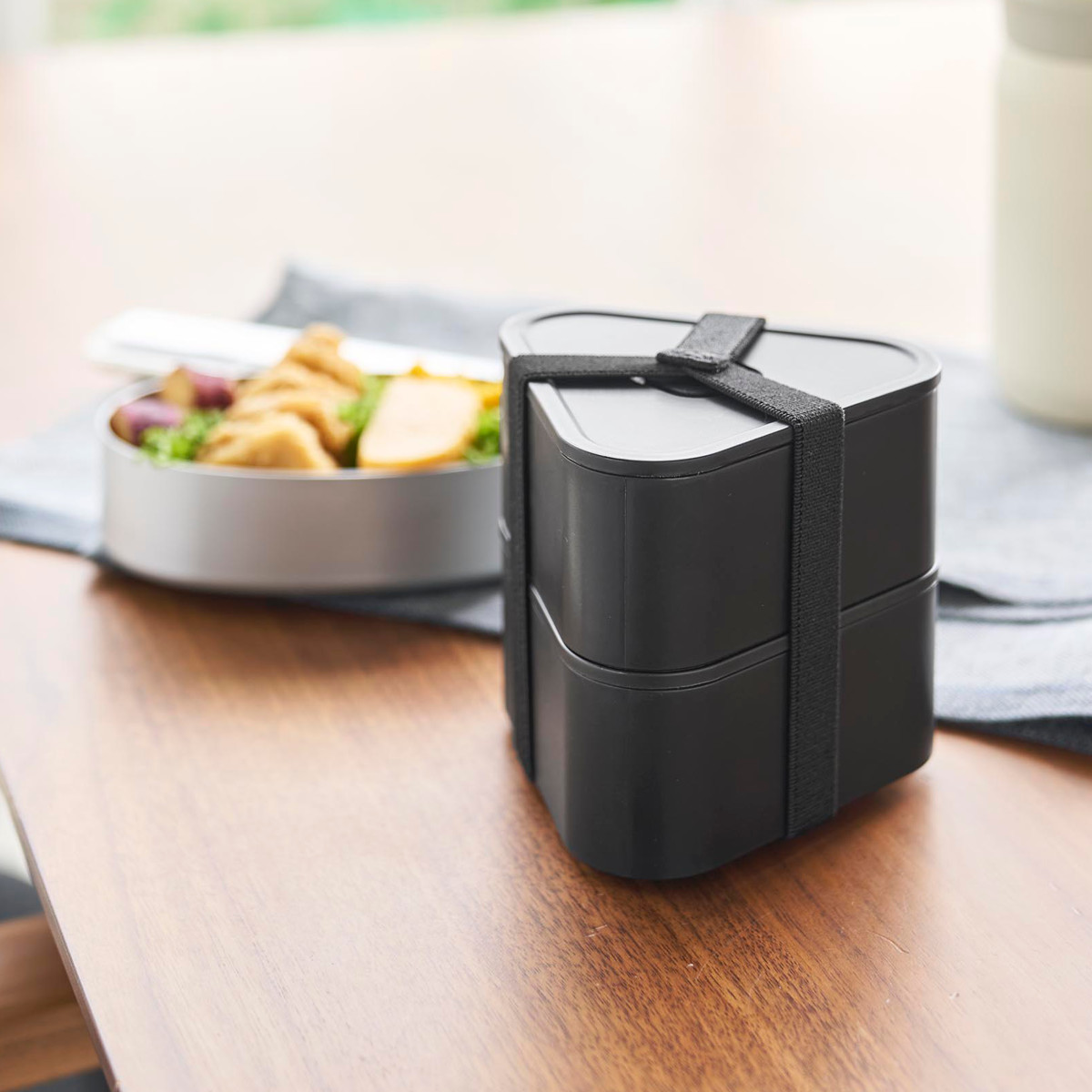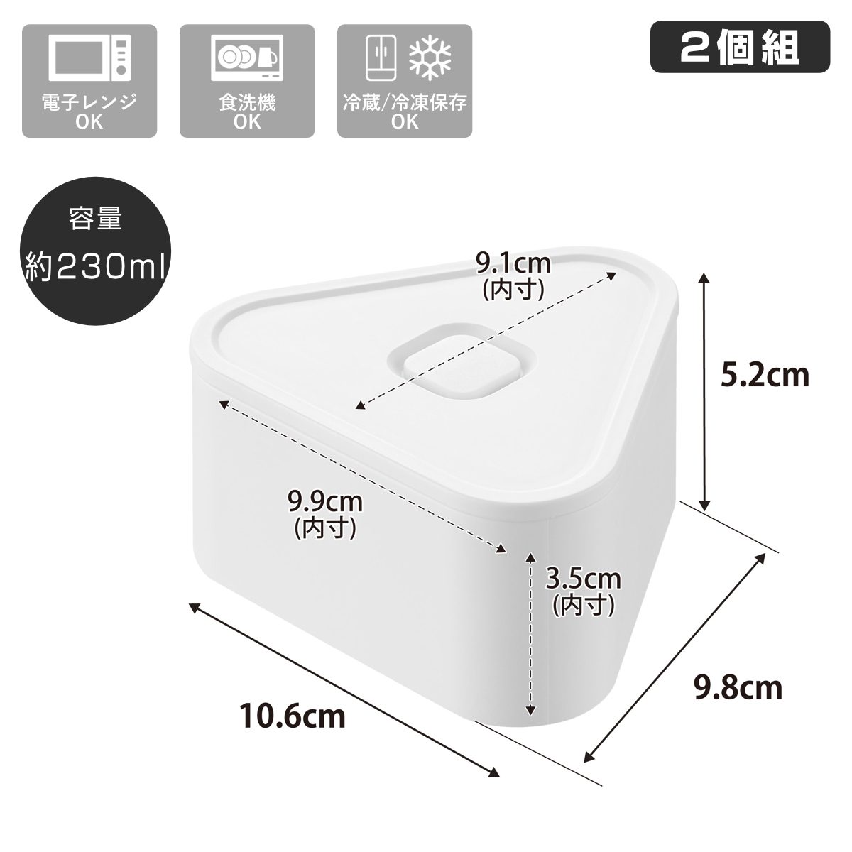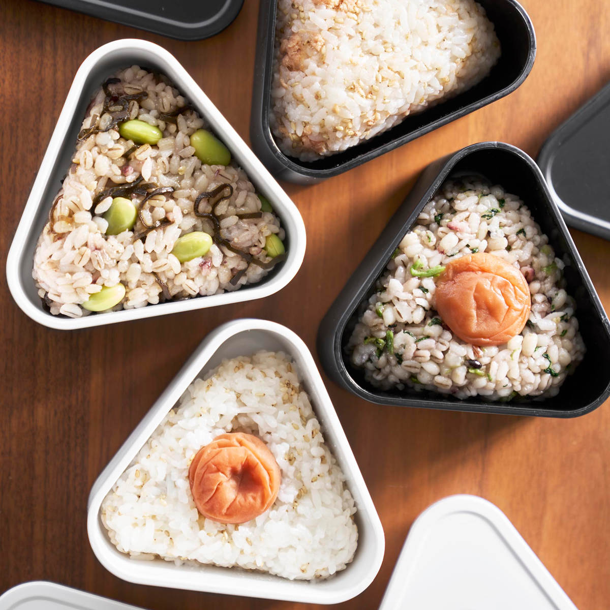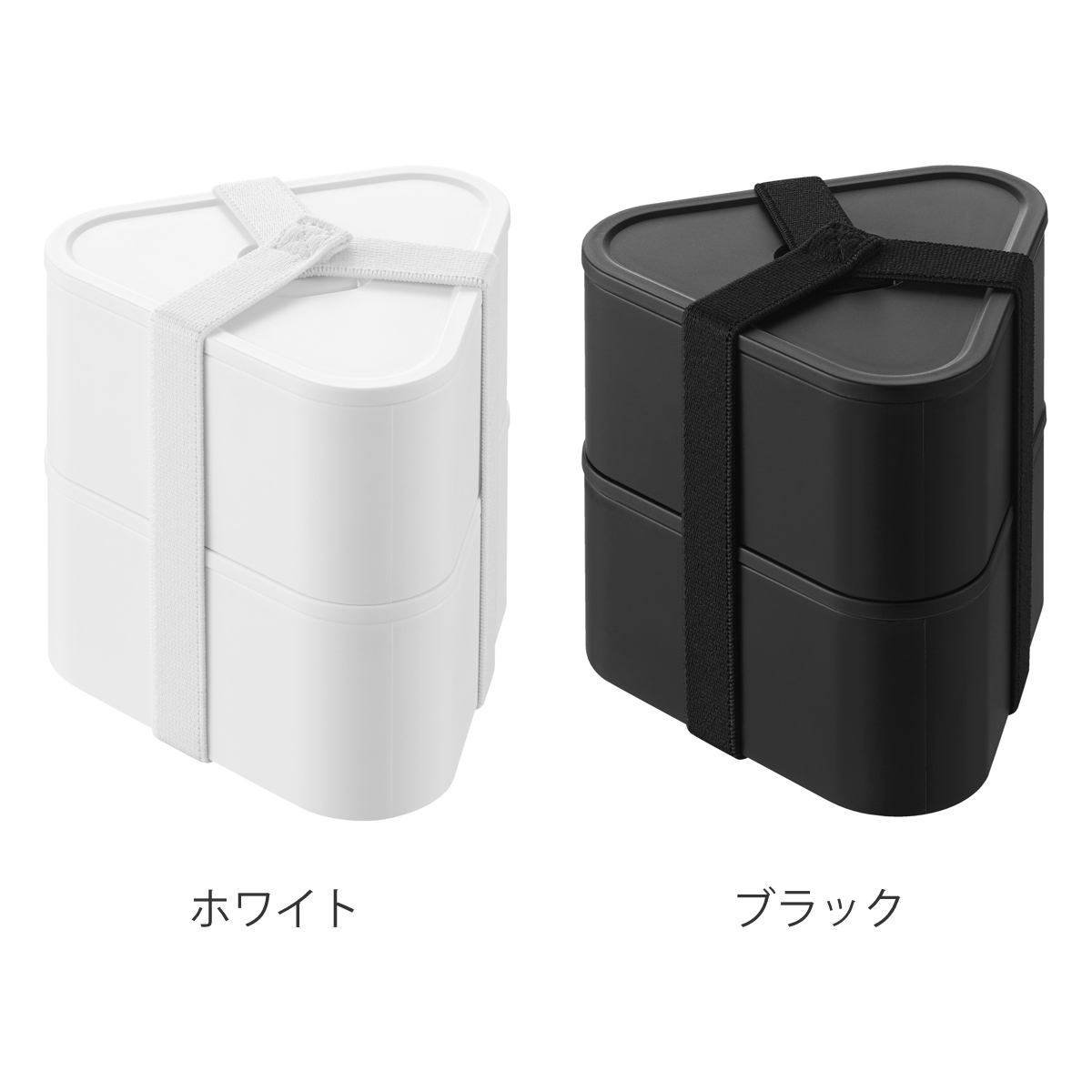 コンビニのおにぎりもきれいな形のまま収納できます。ワンプッシュでしっかり密閉でき、ゴムバンド付きで持ち運びも安心です。