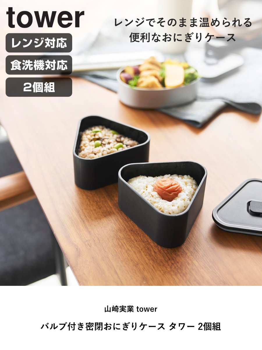 山崎実業 tower バルブ付き密閉おにぎりケース タワー 2個組 ( 4903208104708 タワーシリーズ おにぎりケース 電子レンジ対応 食洗機対応 2個セット 冷凍庫対応 バルブ付き 密閉 おにぎり ケース 三角おにぎり お弁当 弁当 ) 【ブラック】
