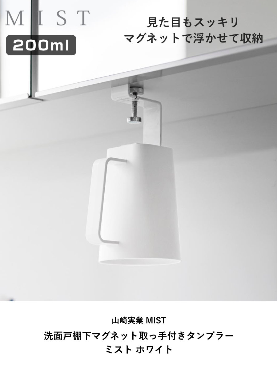 山崎実業 MIST 洗面戸棚下マグネット取っ手付きタンブラー ホワイト ミスト ( 4903208102438 ミストシリーズ タンブラー マグネットタンブラー コップ マグネット 磁石 洗面戸棚下 取っ手付きタンブラー 洗面所 歯磨きコップ )