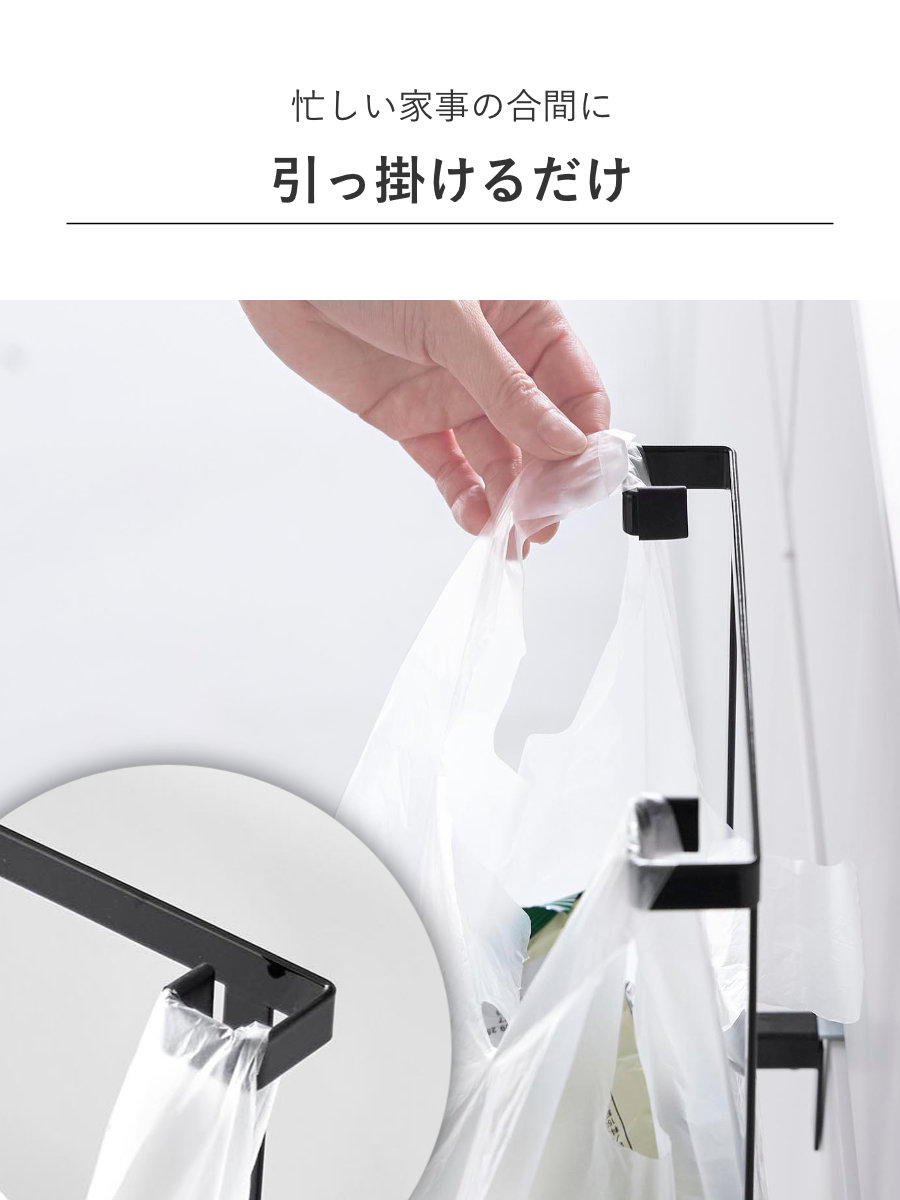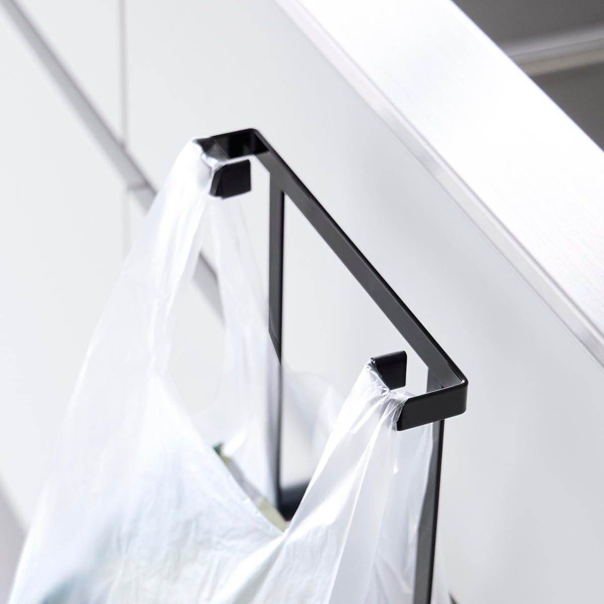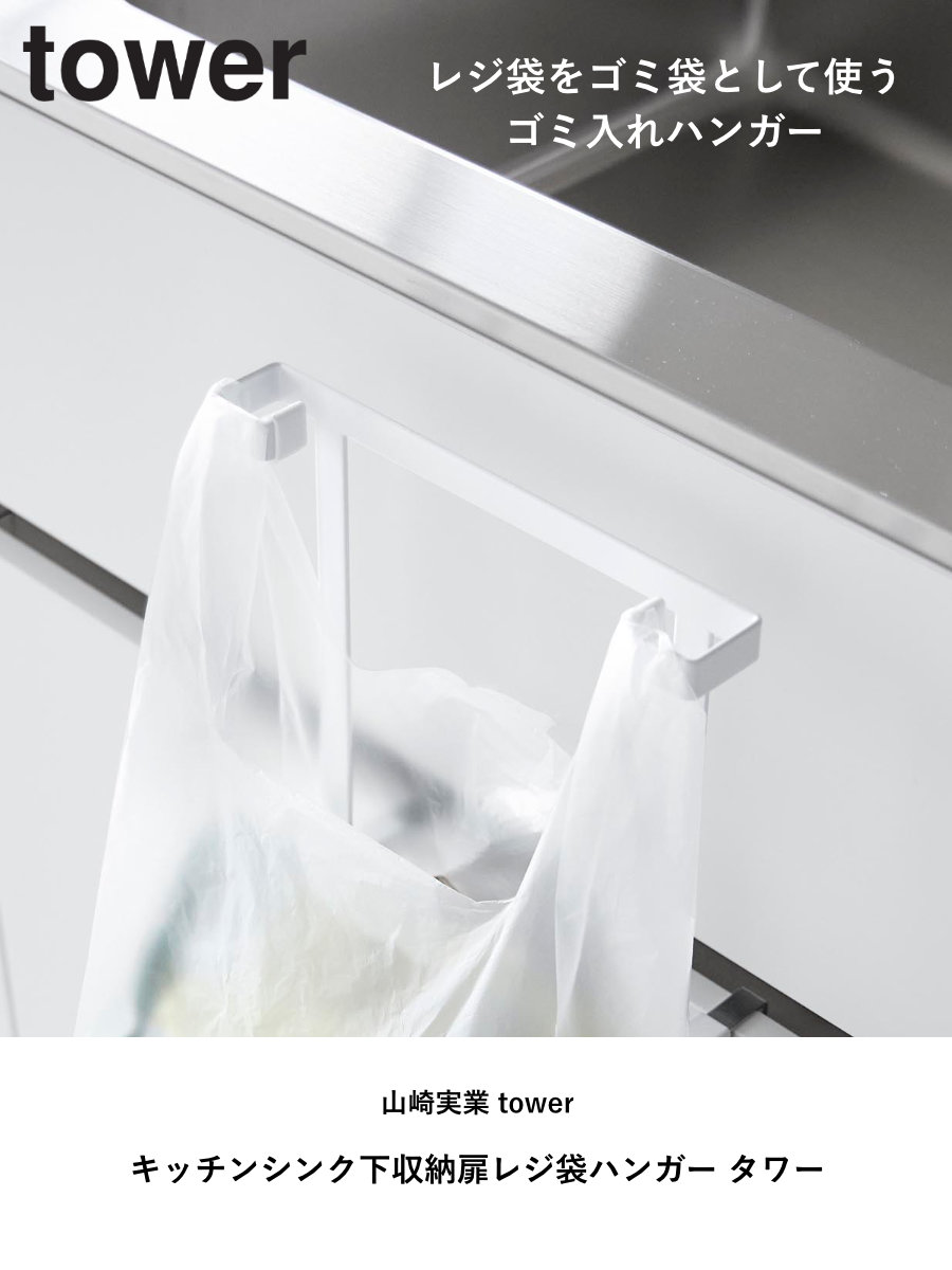 山崎実業 tower キッチンシンク下収納扉レジ袋ハンガー タワー ( 4903208103329 タワーシリーズ レジ袋ハンガー ゴミ入れ キッチンシンク下 レジ袋 ハンガー 収納扉 レジ袋ホルダー レジ袋掛け ) 【ブラック】