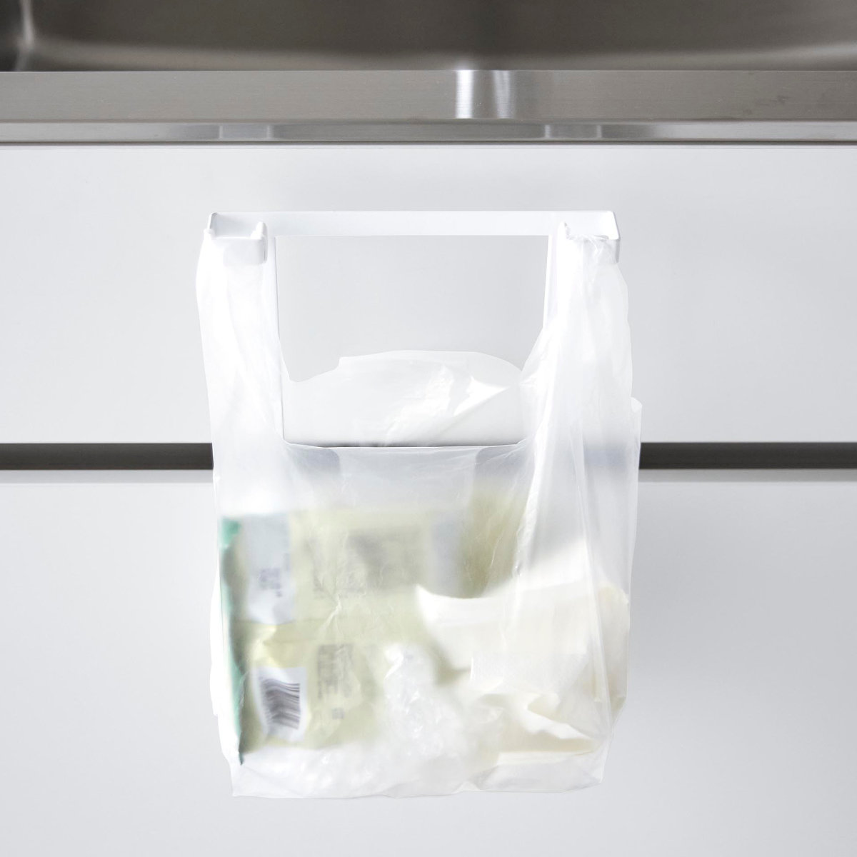 レジ袋を引っ掛けるだけで使え、引き出し開閉時の巻き込みも防止します。