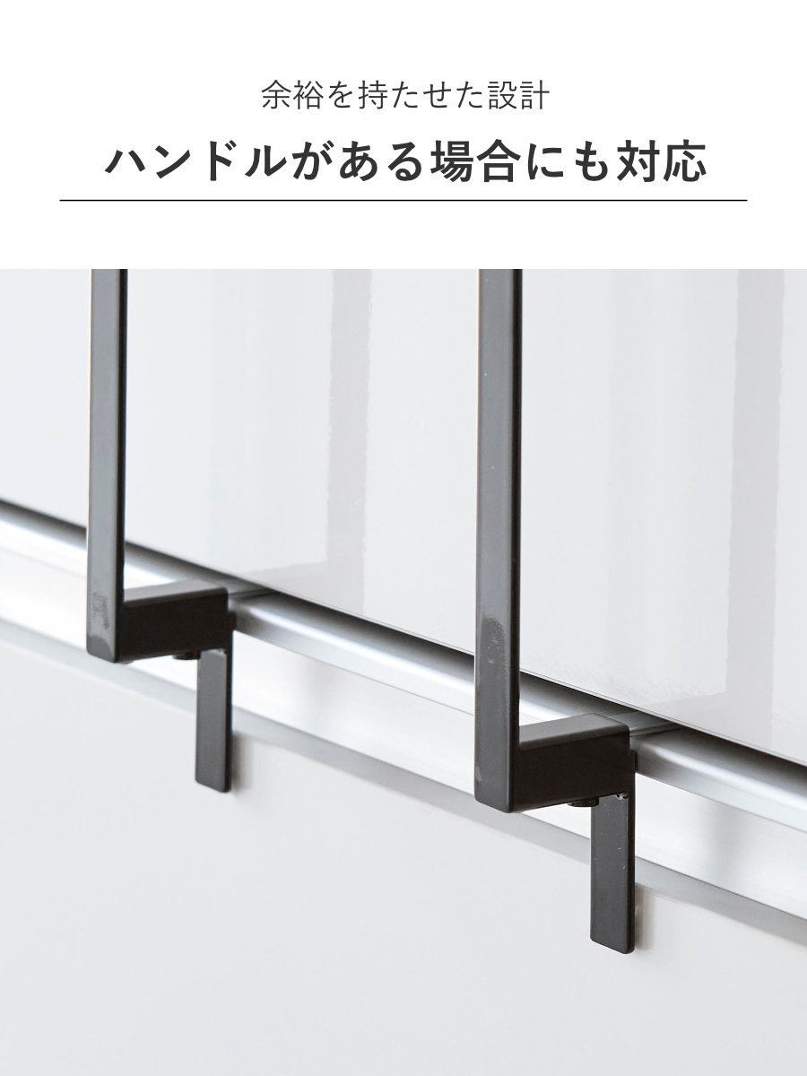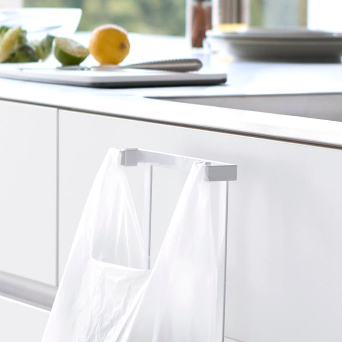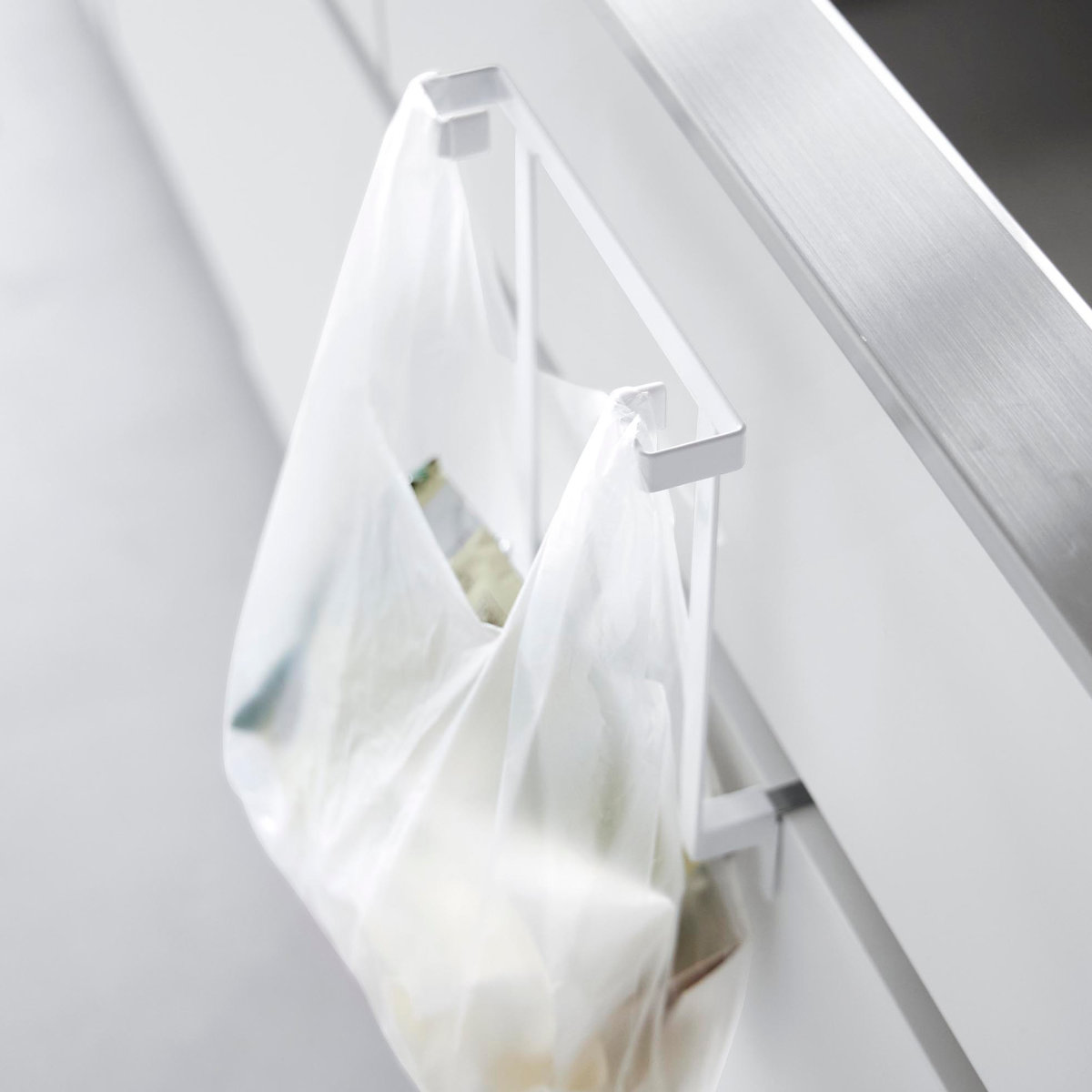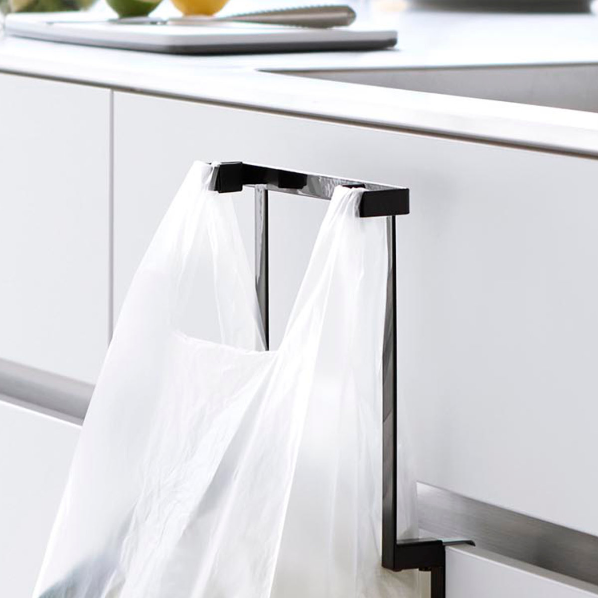 扉の上にハンドルがあってもスムーズに取り付けできるので、キッチンの収納扉や引き出しなど幅広く活躍。使える場所が多いので、無駄なく便利にレジ袋を掛けられます。