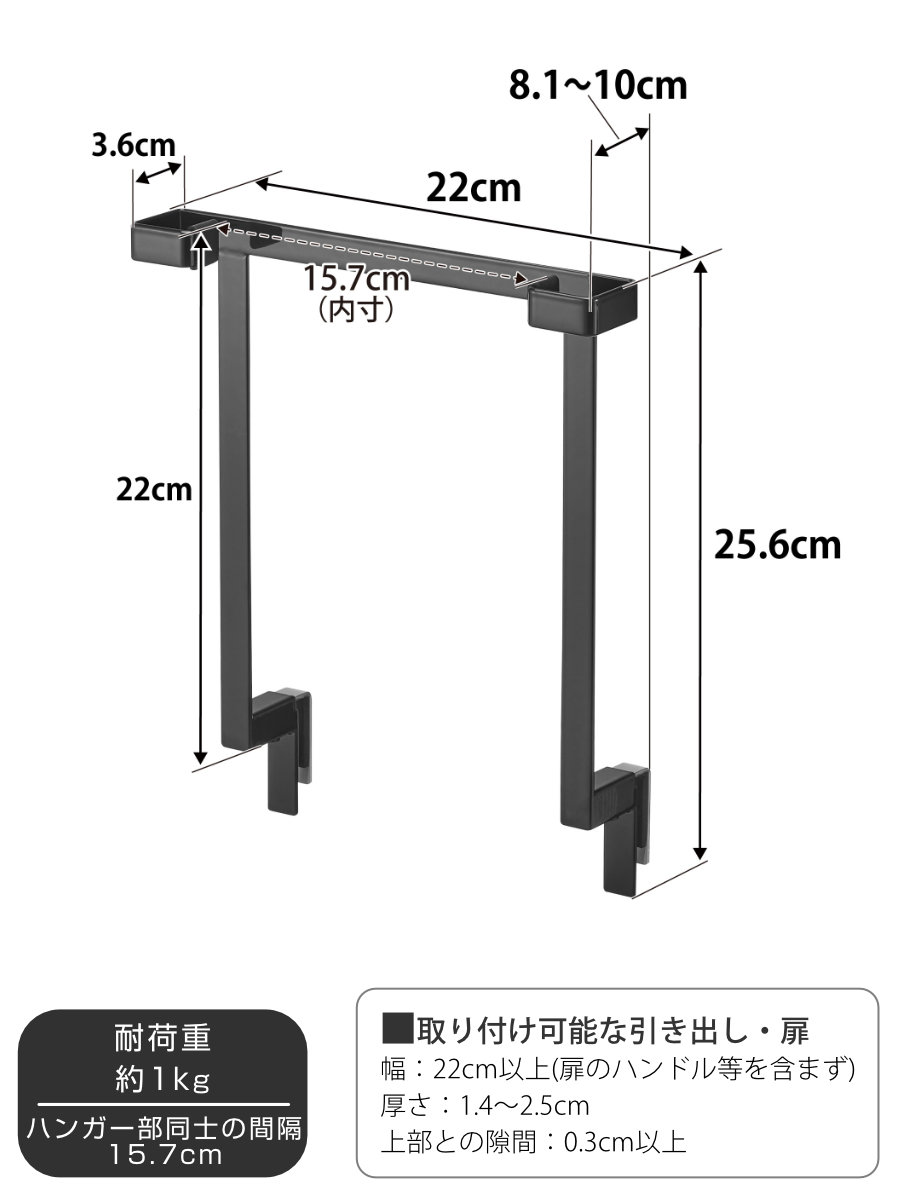 | サイズ | 約 幅22×高さ25.6(cm) 奥行:8.1~10cm ハンガー部同士の間隔:幅15.7cm |