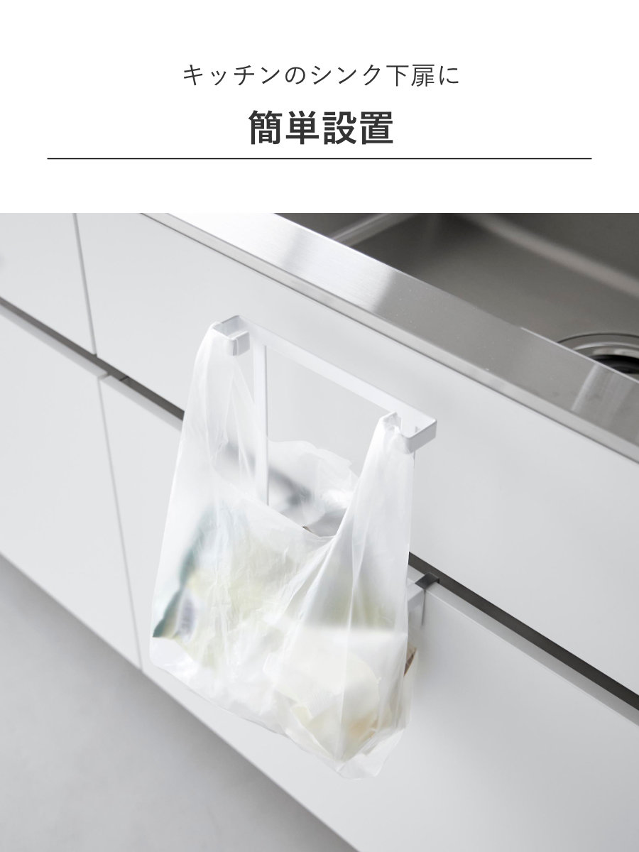 キッチンのシンク下扉に簡単に設置できる、高さ21cmのレジ袋ハンガーです。
