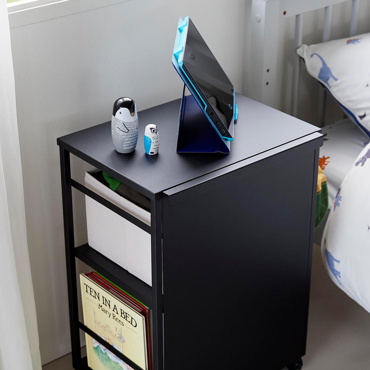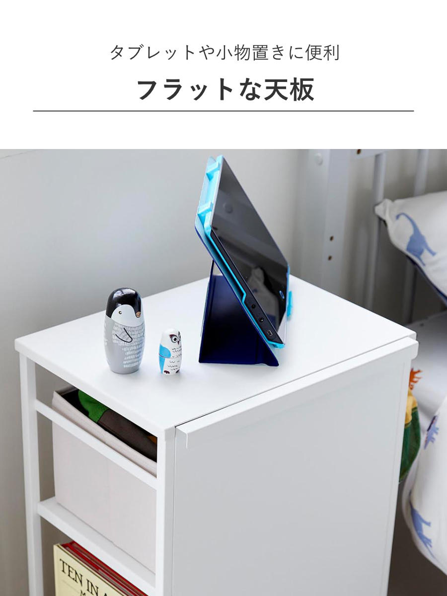 フラットな天板は、タブレットや小物などを置いたりと、使い方に合わせて自由に活用できます。
