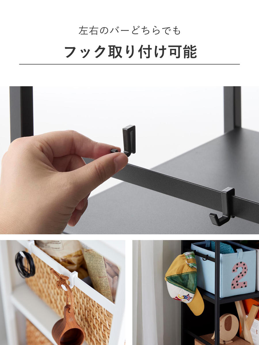 お部屋のレイアウトに合わせて、フックの位置は左右どちらにでも取り付けられます。