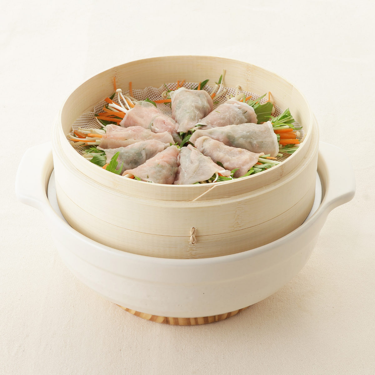 竹のほのかな香りが楽しめる竹せいろの本体です。蒸気が食材を優しく包み込み、素材本体の味わいを引き出します。