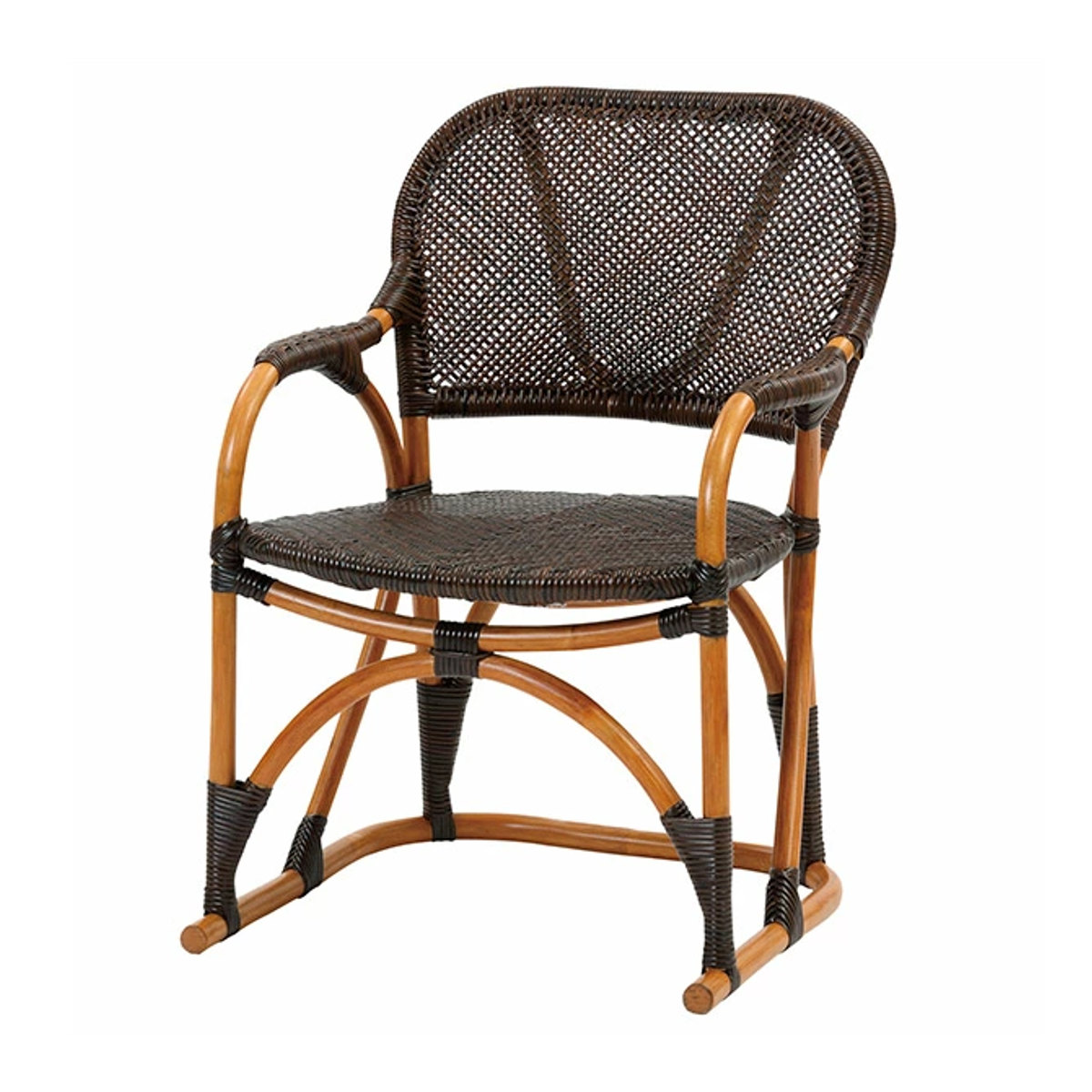 コンパクトで座り心地が良いラタンチェアです。肘掛け部分も編みこんでいるため、立ち座りの際につかまりやすいつくりです。落ち着いた色合いで、和洋問わず、どんなテイストのお部屋にも馴染むデザイン。ラタン製なので、軽くて持ち運びしやすいのも魅力のひとつです。