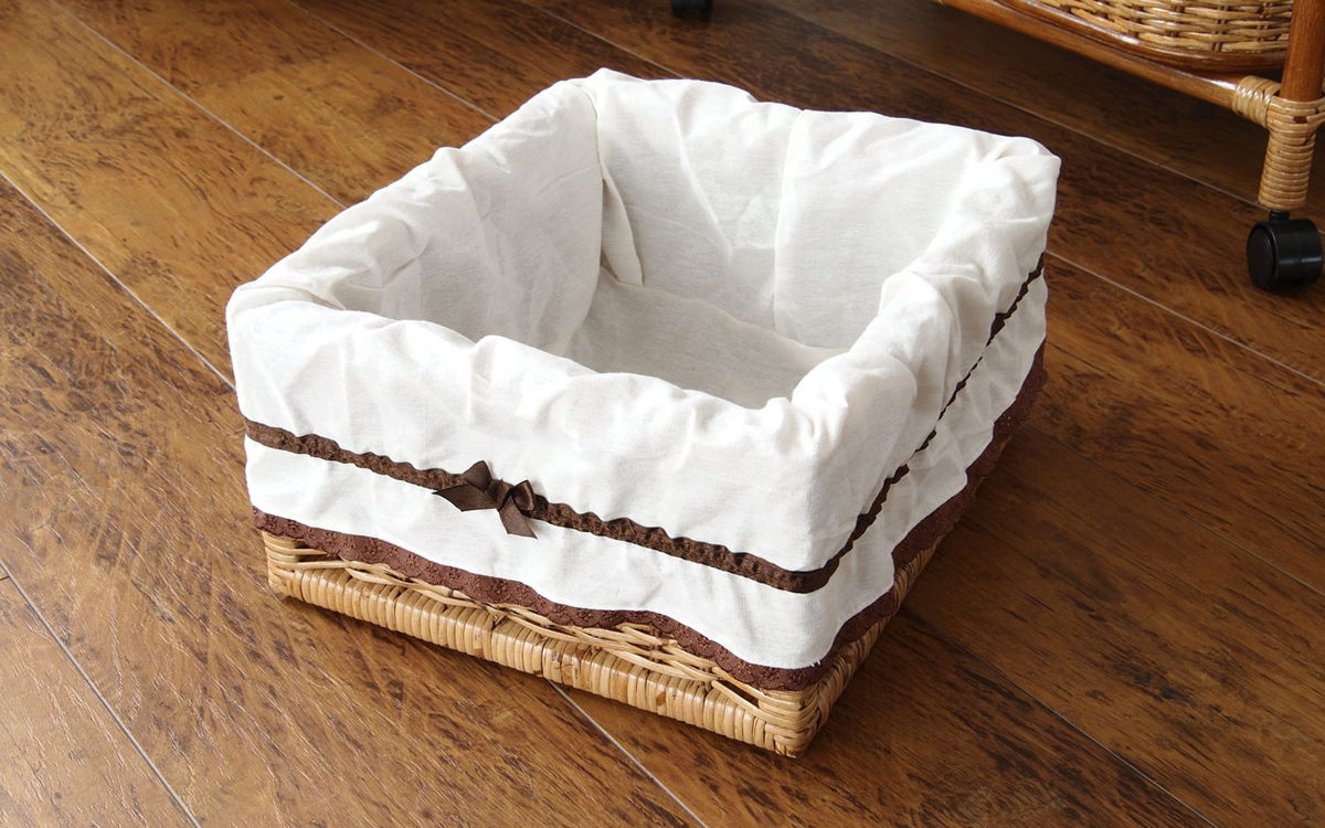 3段の引き出しと持ち手が付いたバスケットは内布付き。大切な衣類やタオルを傷つけることなく収納できます。中身が見えないので下着類の収納にも最適です。