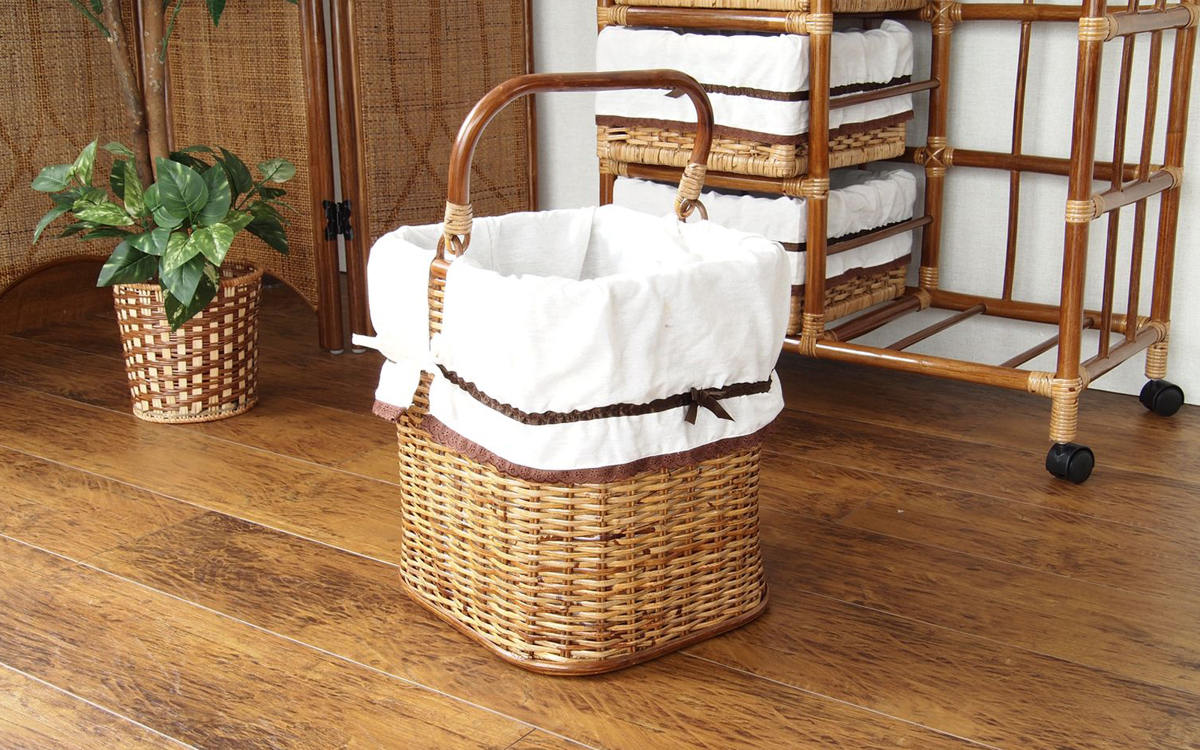 通気性の良いラタン製ランドリーチェスト