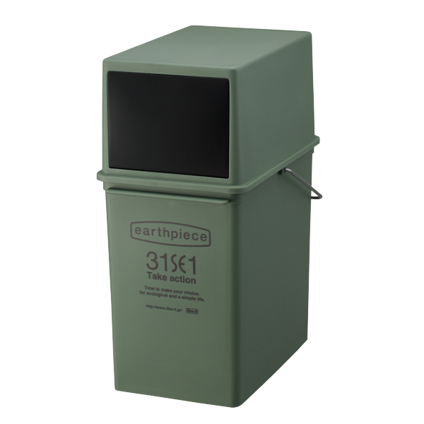 ゴミ箱 17L フロントオープンダスト アースピース 浅型 ふた付き スタッキング ( ごみ箱 17リットル フロントオープン 蓋つき スリム 角型 持ち手付き ダストボックス キッチン 前開き 積み重ね 袋 見えない おしゃれ かわいい ) 【カーキ】