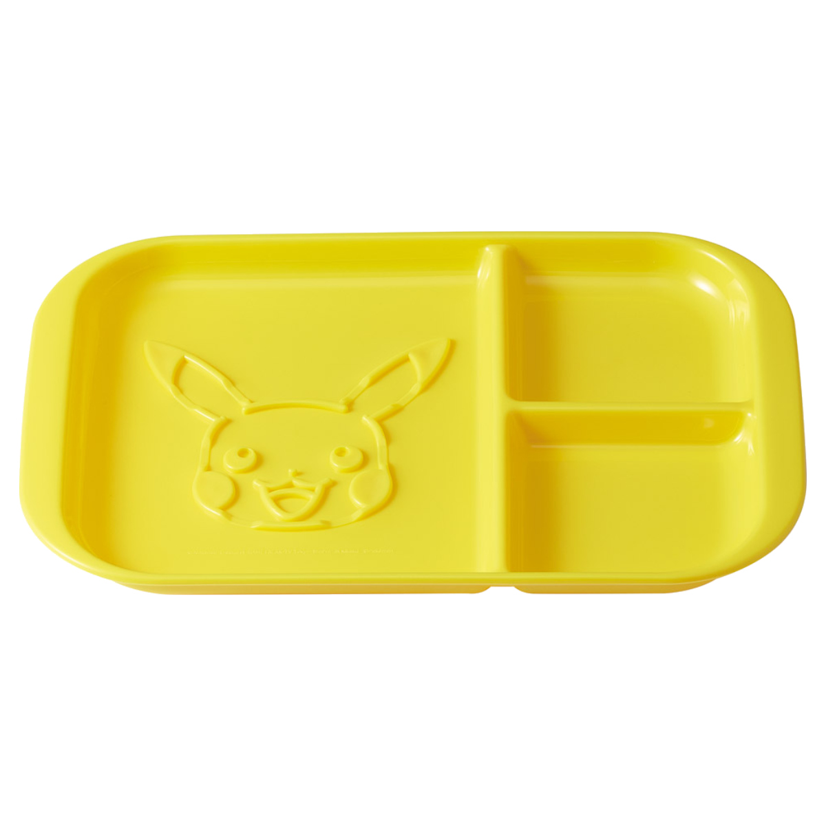 ピカチュウの顔がかわいい、仕切り付きモーニングプレートです。軽くて割れにくいプラスチック製で、電子レンジ・食洗機にも対応しています。忙しい朝でも使いやすいアイテムです。