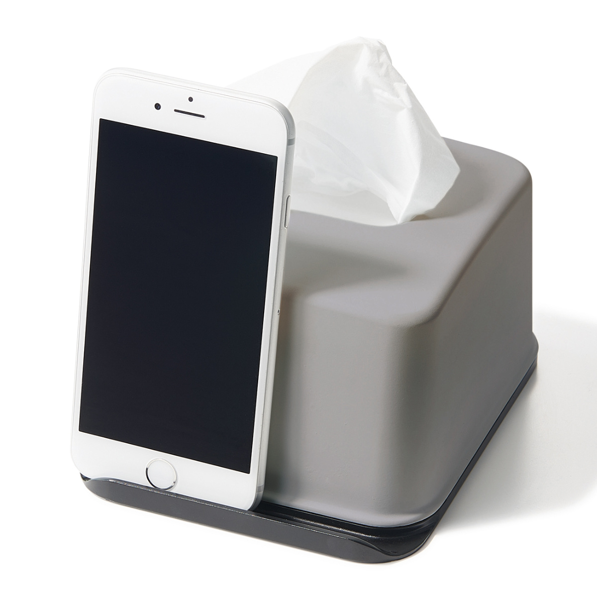 ティッシュケース 再生材 ハーフティッシュボックス スマホスタンド ( ティッシュ ハーフ ハーフサイズ スマホ スタンド 便利 収納 節約 コンパクト リビング キッチン 洗面所 再生プラスチック エコ インテリア 卓上 ) 【グレー】