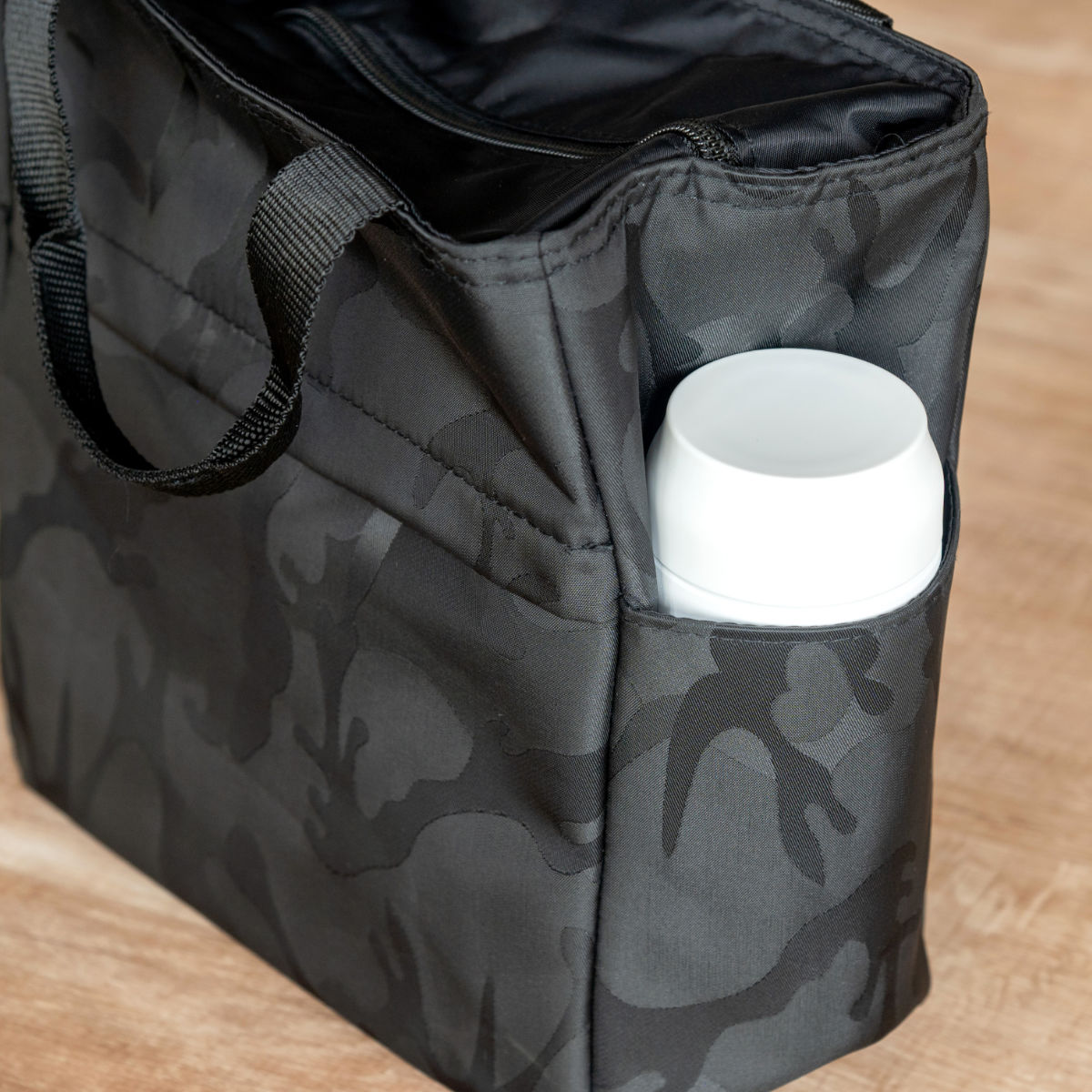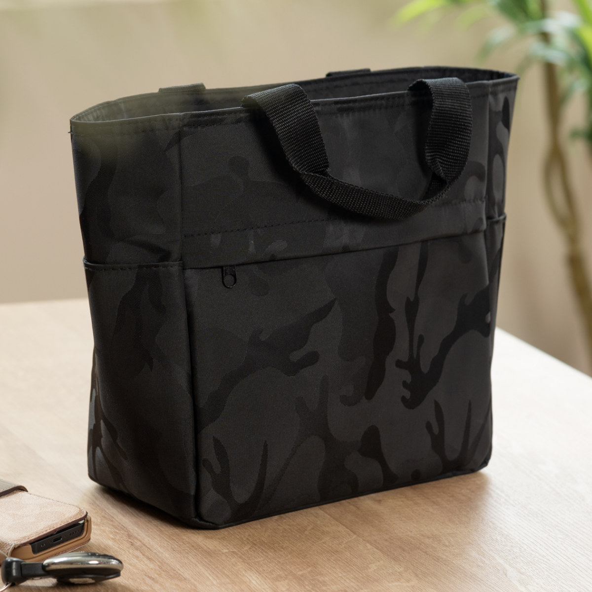 男女問わず持ちやすいシックなカモフラ柄なので、家族でシェアできます。お散歩時だけでなく、普段のお出かけやランチバッグとしても使いやすくおすすめです。