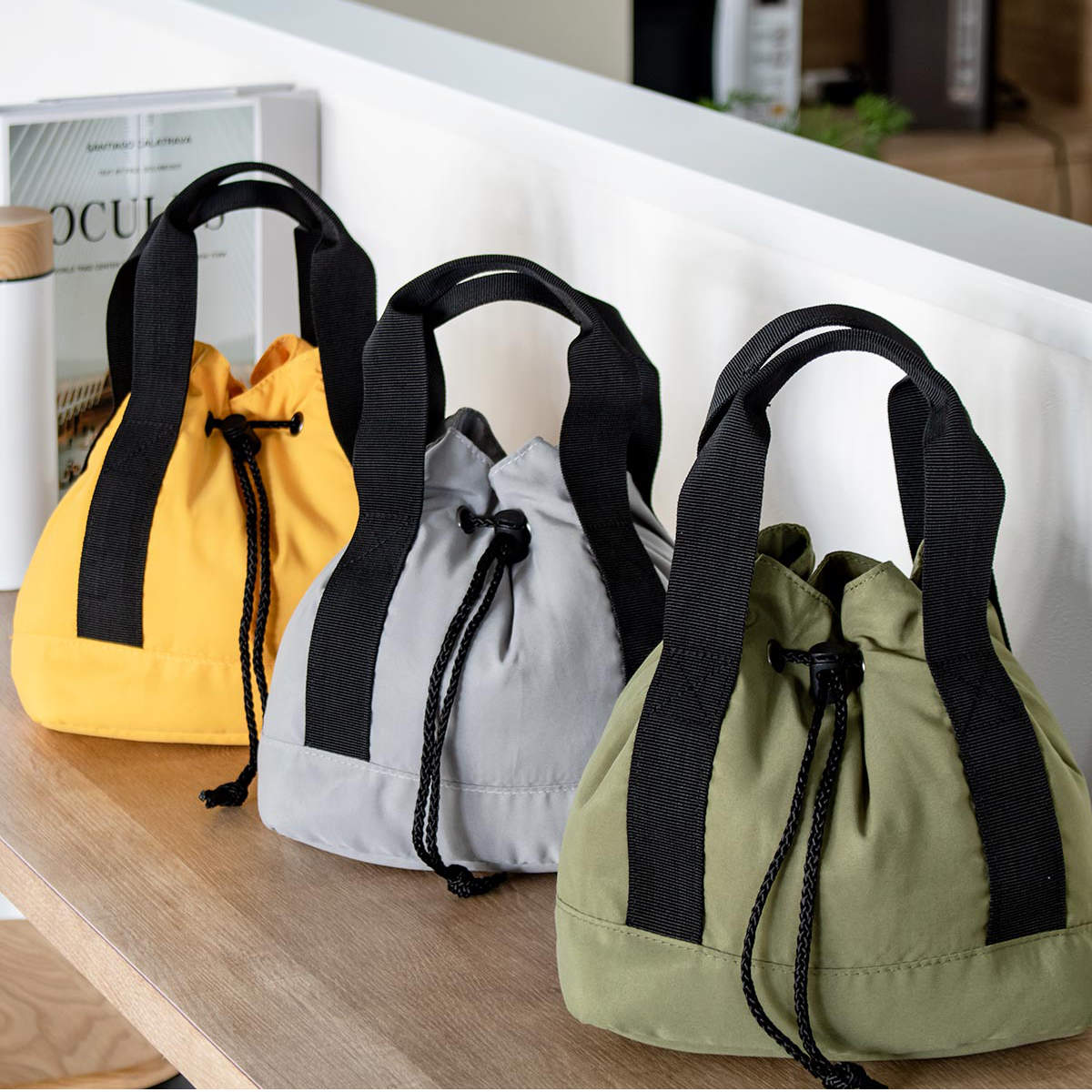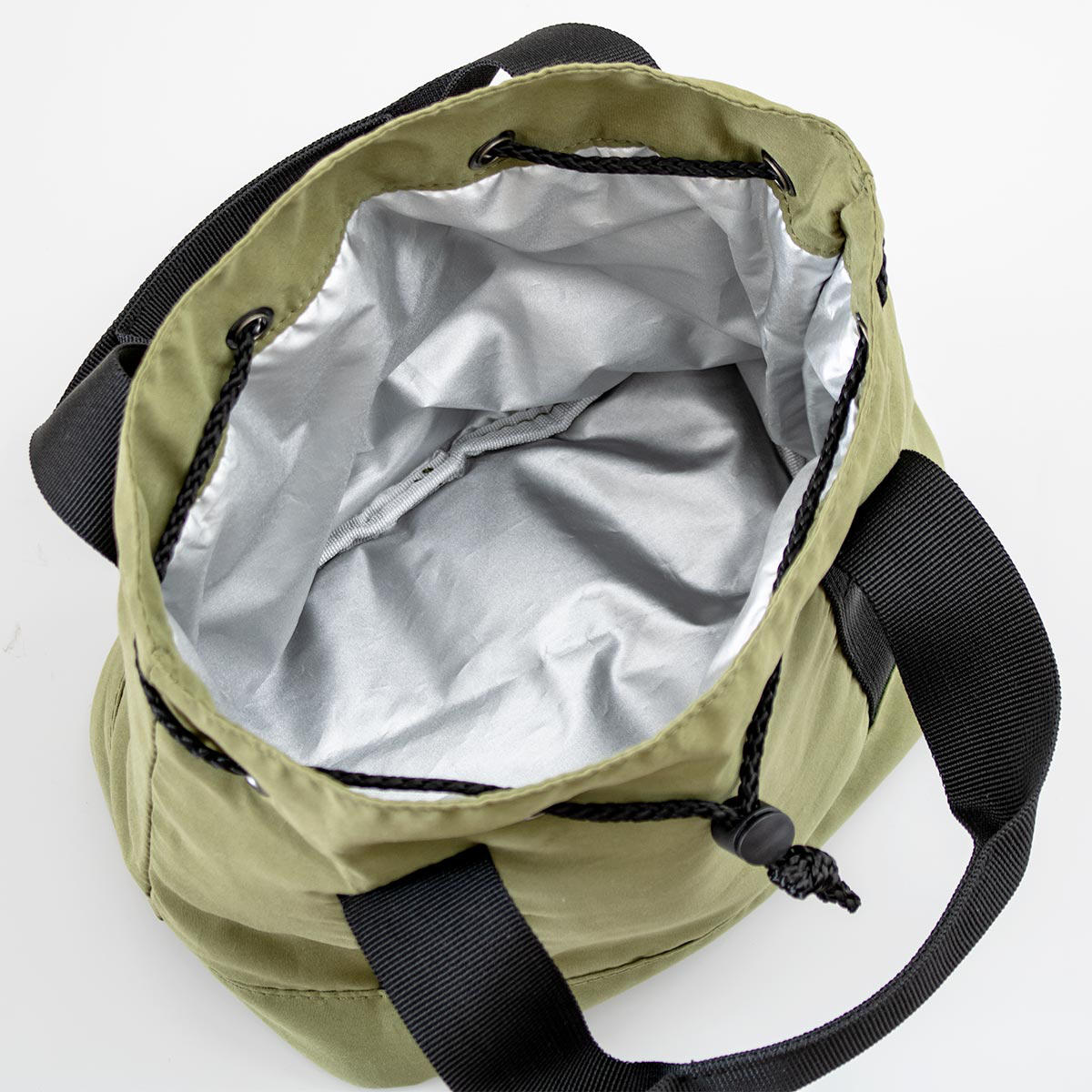 ひもをきゅっと絞れば中身がこぼれにくい巾着型に。お散歩時だけでなく、普段のお出かけやランチバッグとしても使いやすくおすすめです。