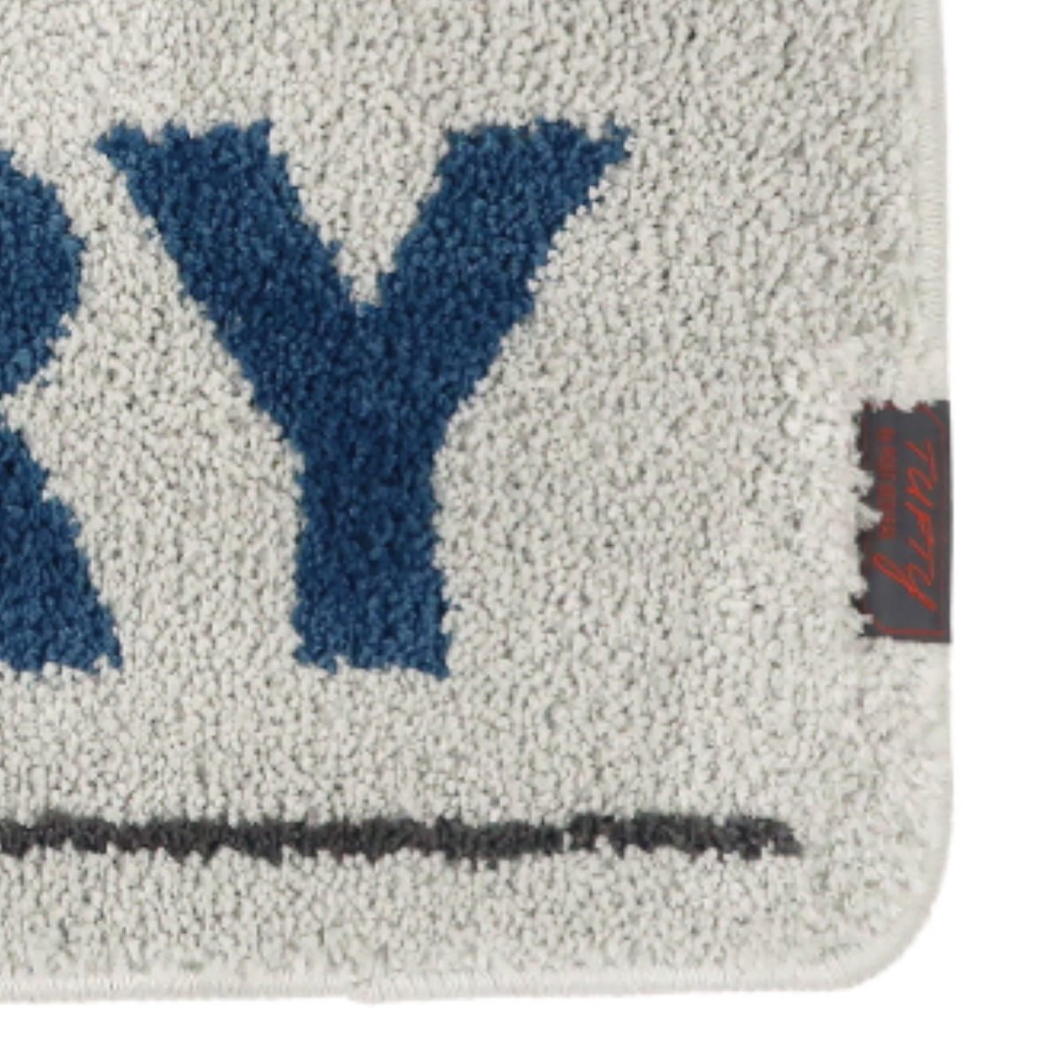 ●タフト製法で丁寧に仕上げたふんわりとした質感に、英字ロゴを大胆にあしらった印象的なデザインです。