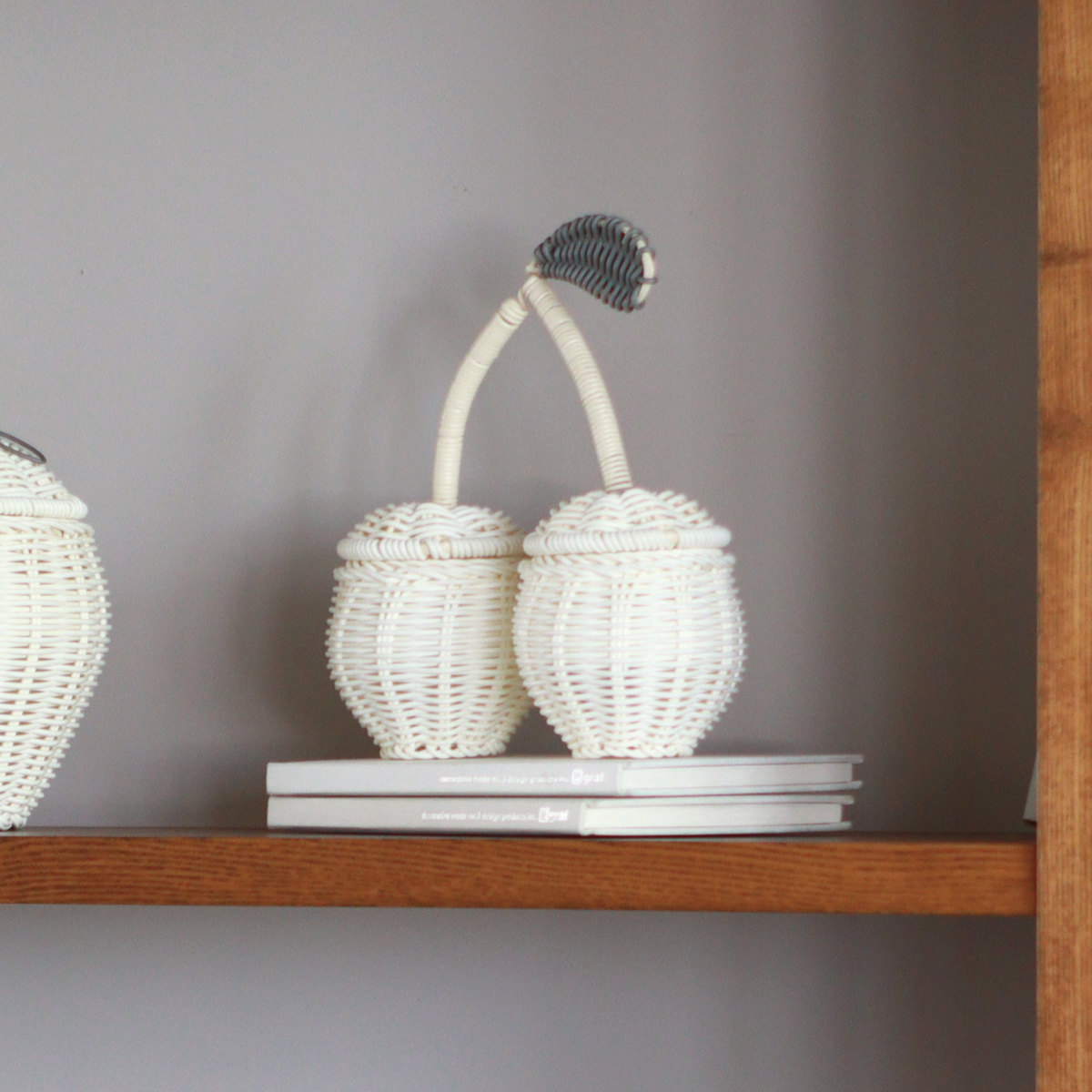 小ぶりなサイズが愛らしい、チェリー型のバスケットです。玄関では鍵やヘアゴム、USBやイヤホンなどの小物入れに、カフェコーナーでは紅茶のティーバッグやミルクポーション入れとしてもおすすめです。