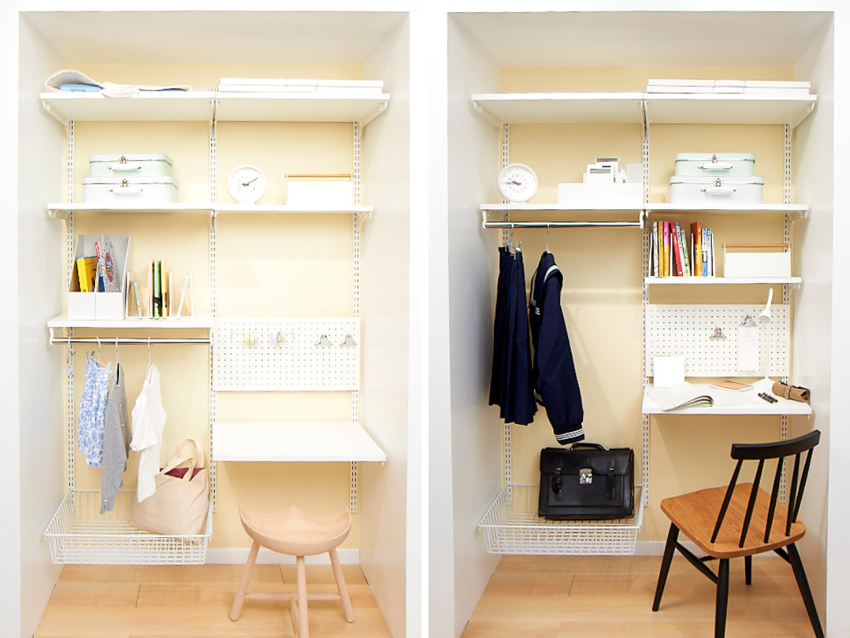 パーツは全て可動式で、ご家族構成や成長に合わせて手軽にパーツの移動や追加が可能です。5年・10年経つとガラリと変化する持ち物や服装にも対応できます。