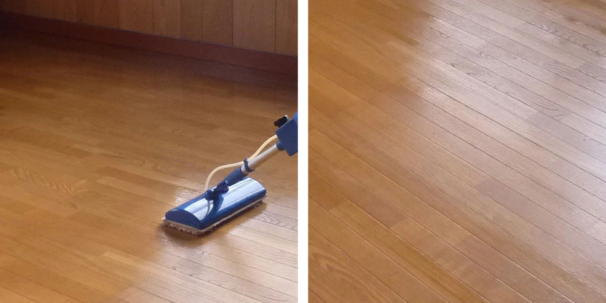 1.床面を掃除し、ほこりや汚れを取ってからワックスモップ等で床に塗ります。