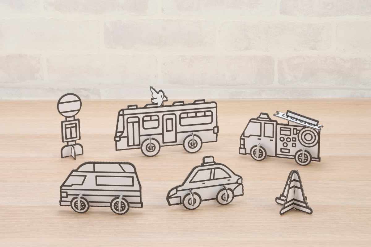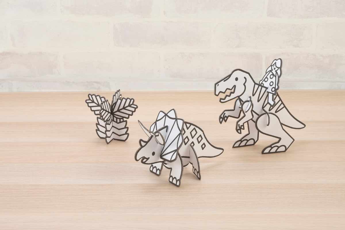 道具を使わず、パーツ同士の切り込みをマークに差し込むだけで簡単に組み立てられる、ダンボールの工作キットです。対象年齢は3歳からと、小さなお子様でも大人の方と一緒に楽しく作ることができます。