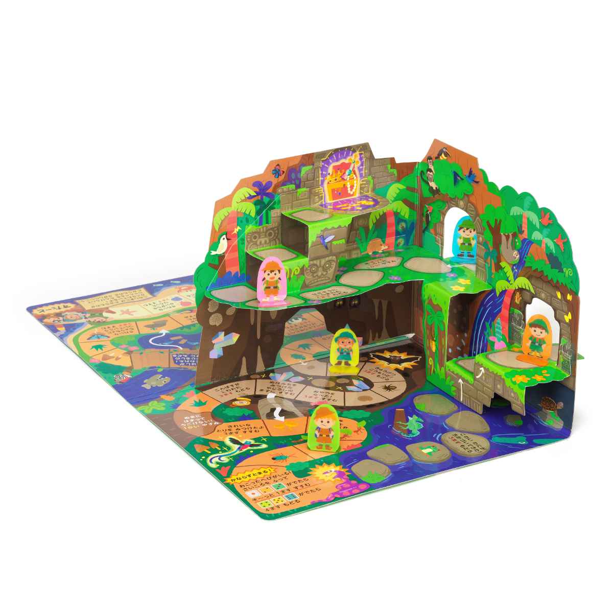 ジャングルを探検して隠された宝物を探すすごろくです。洞窟探検や遺跡の階段・ツタを登ってワクワクの冒険気分を味わえます。