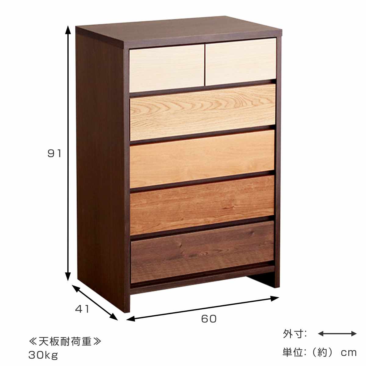 チェスト 5段 幅60cm 木目調 日本製 ( 引き出し 衣類収納 リビング収納 リビングチェスト 脚付き フルスライドレール 背面化粧 木目 引出 グラデーション )