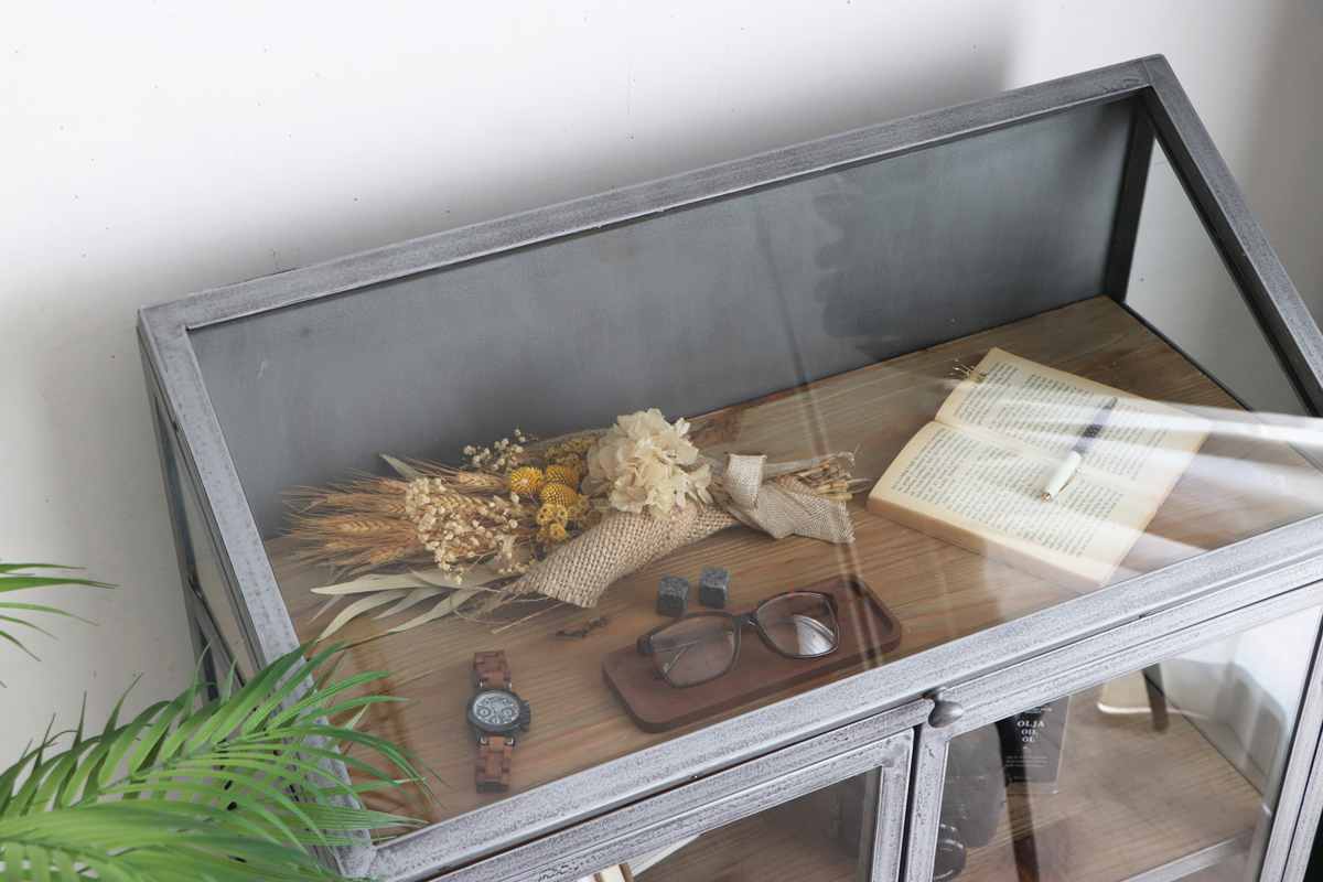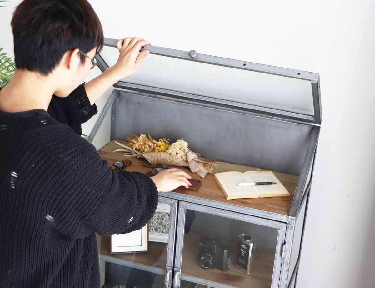 扉は全てガラス製。扉を閉めた状態でも、中の物を見渡せます。お気に入りのコレクションをディスプレイして、お部屋の中で目を惹く一角に。